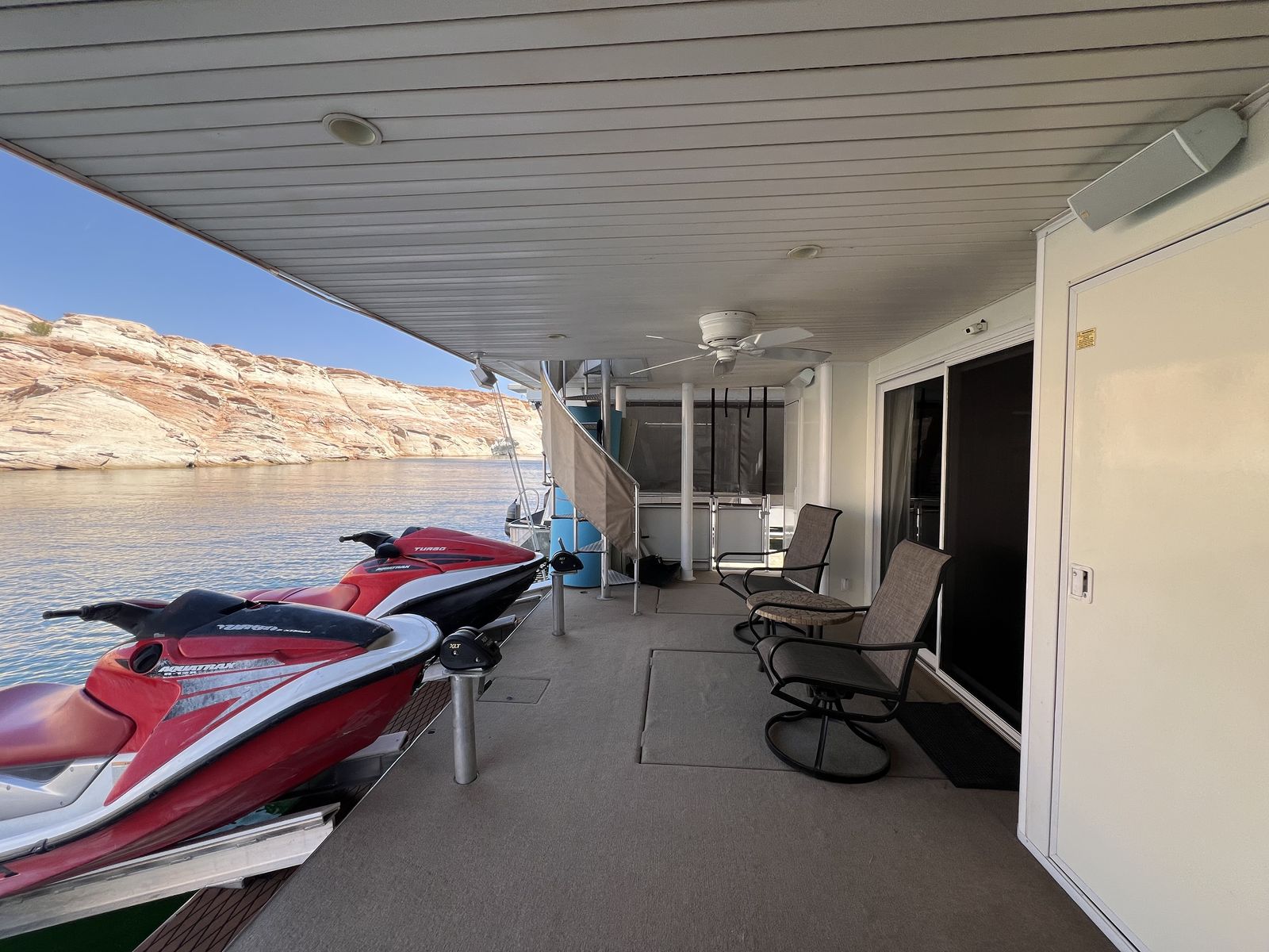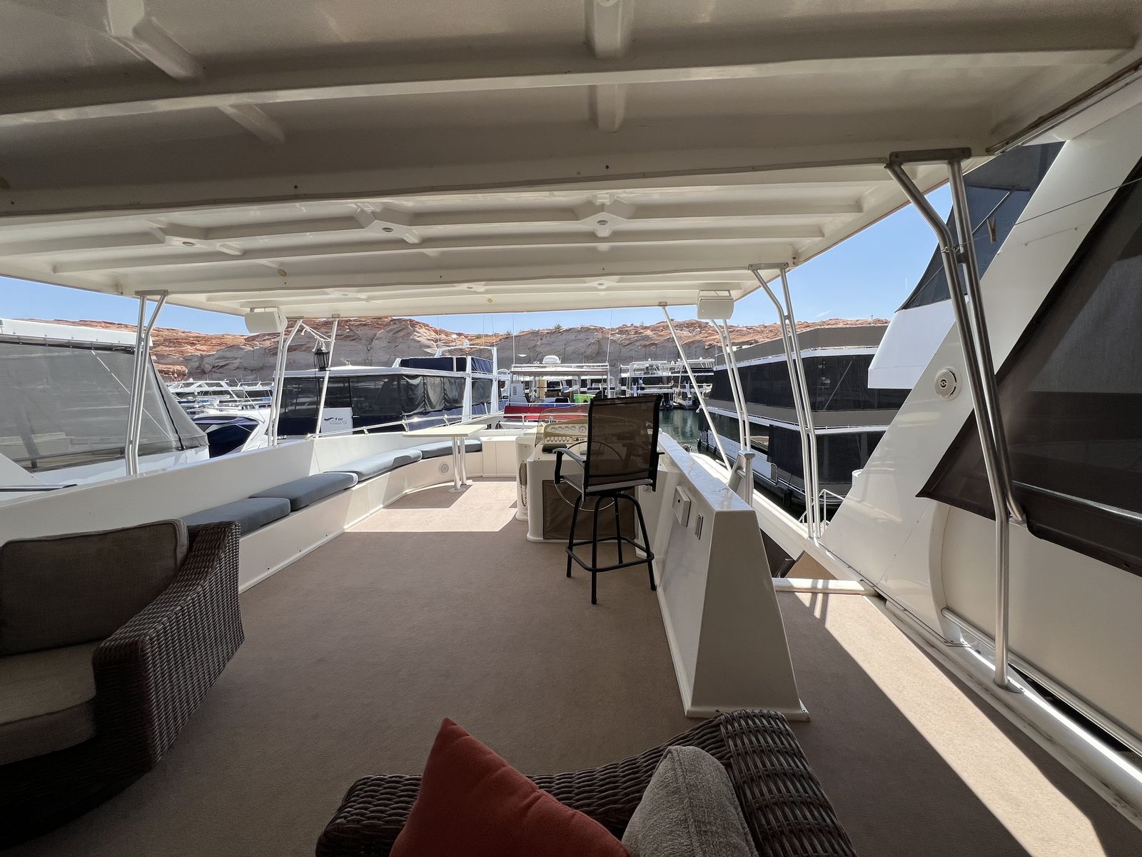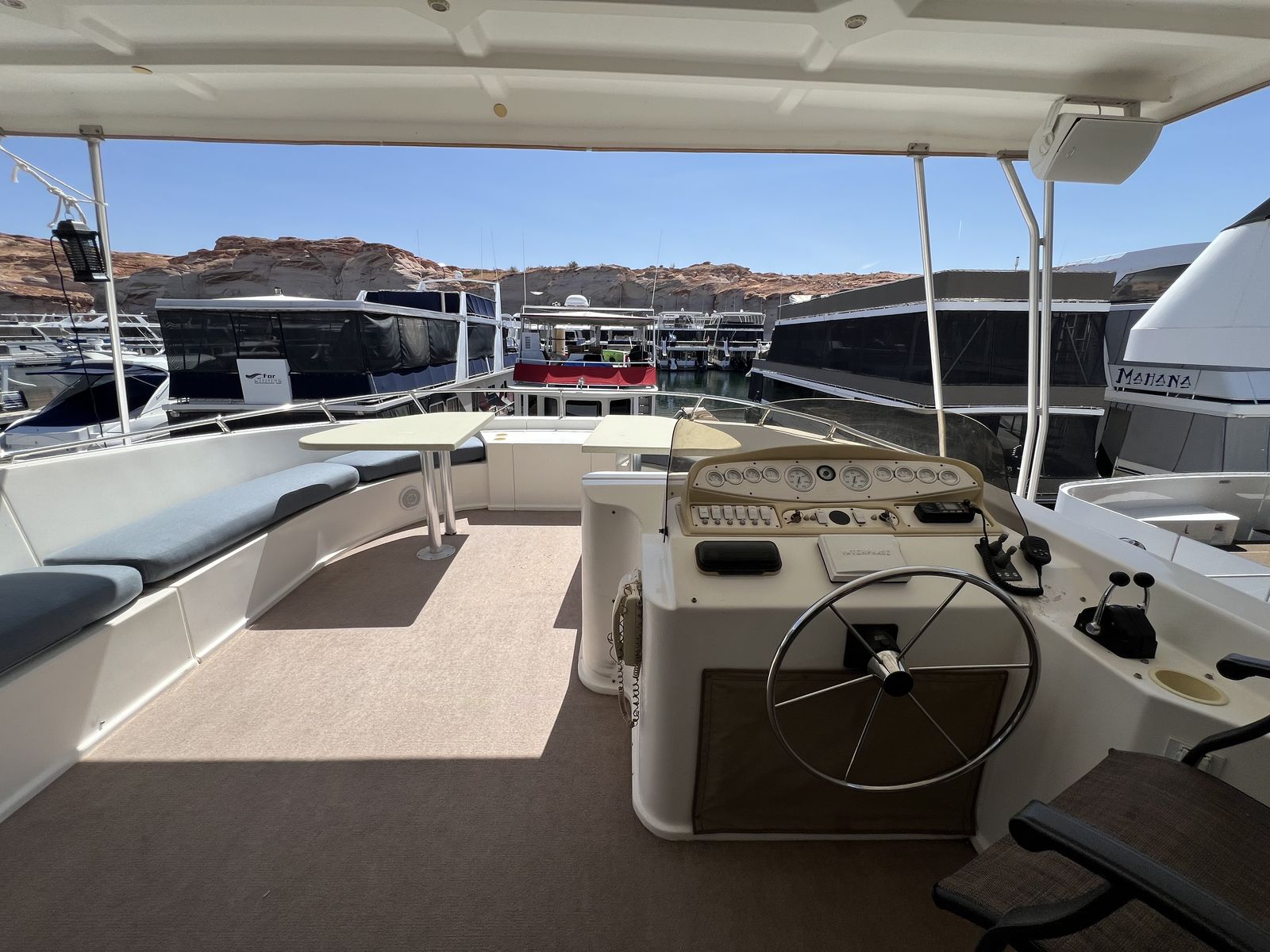 Moored at Antelope Point Marina, owners enjoy dramatic red-rock canyon views, calm protected waters, deep-water access, fuel dock, ship store, launch ramp, and proximity to some of Lake Powell’s most iconic beaches, slot canyons, and cruising areas.