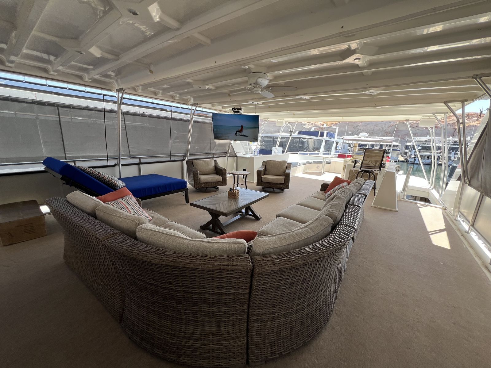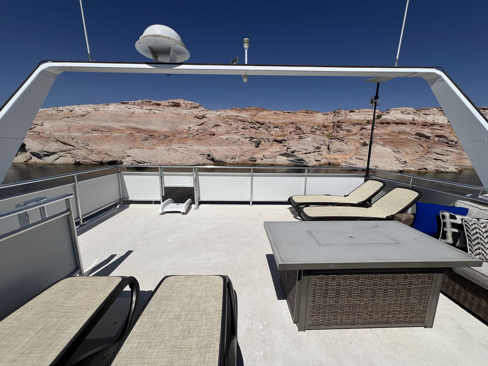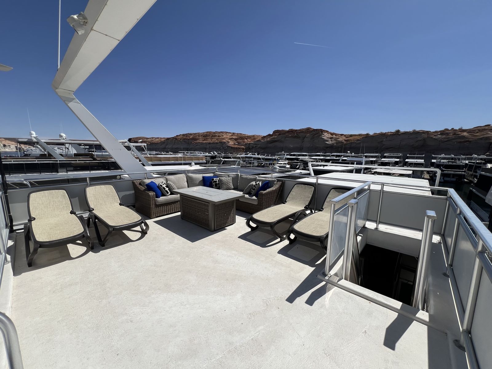 Moored at Antelope Point Marina, owners enjoy dramatic red-rock canyon views, calm protected waters, deep-water access, fuel dock, ship store, launch ramp, and proximity to some of Lake Powell’s most iconic beaches, slot canyons, and cruising areas.