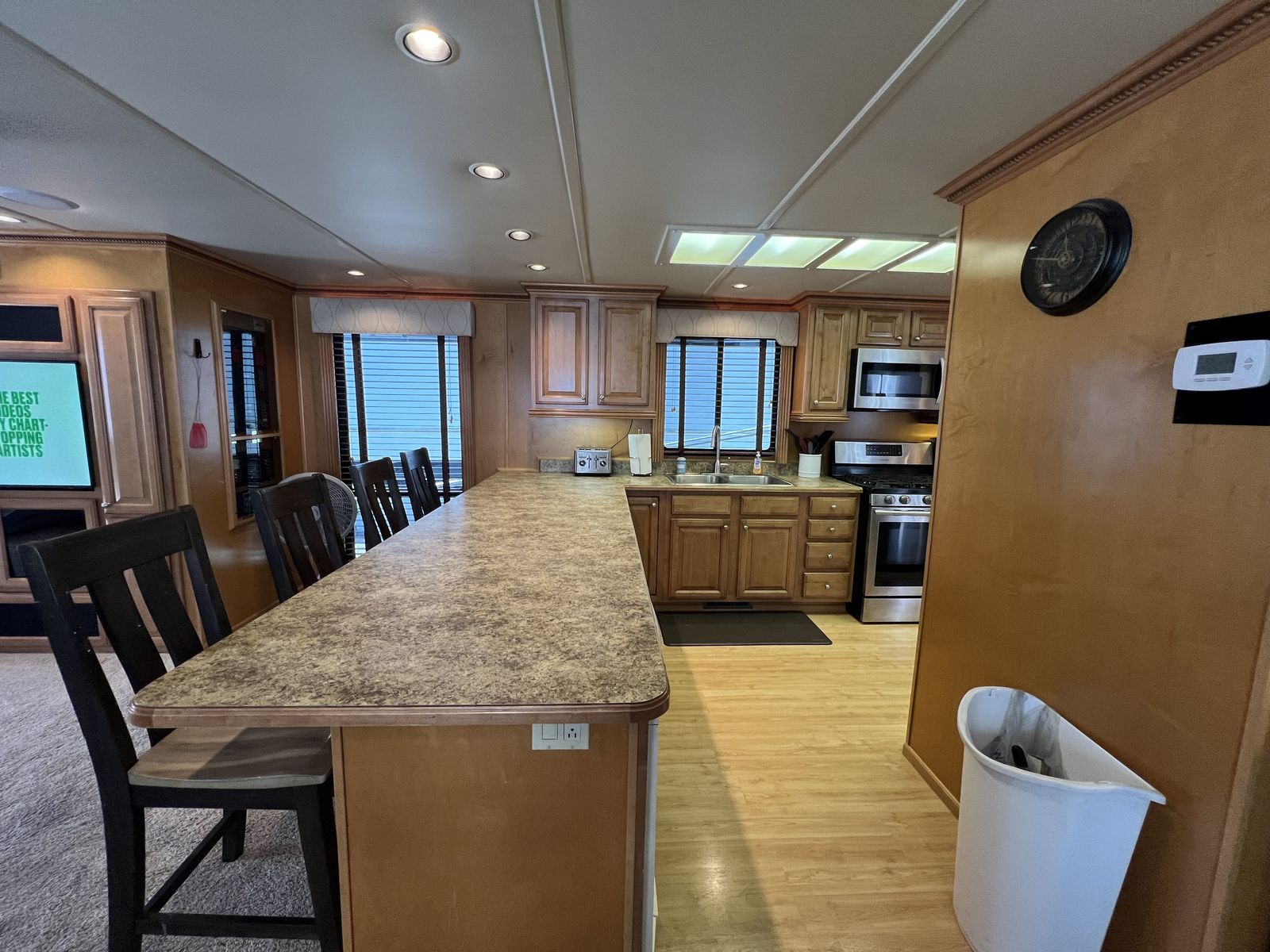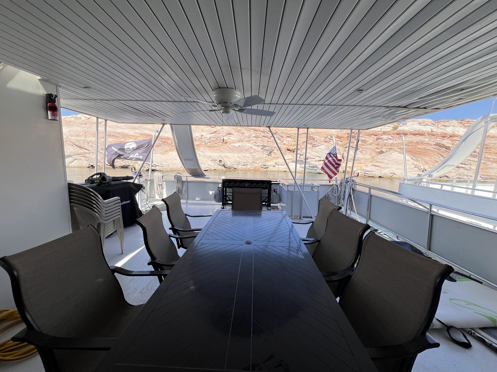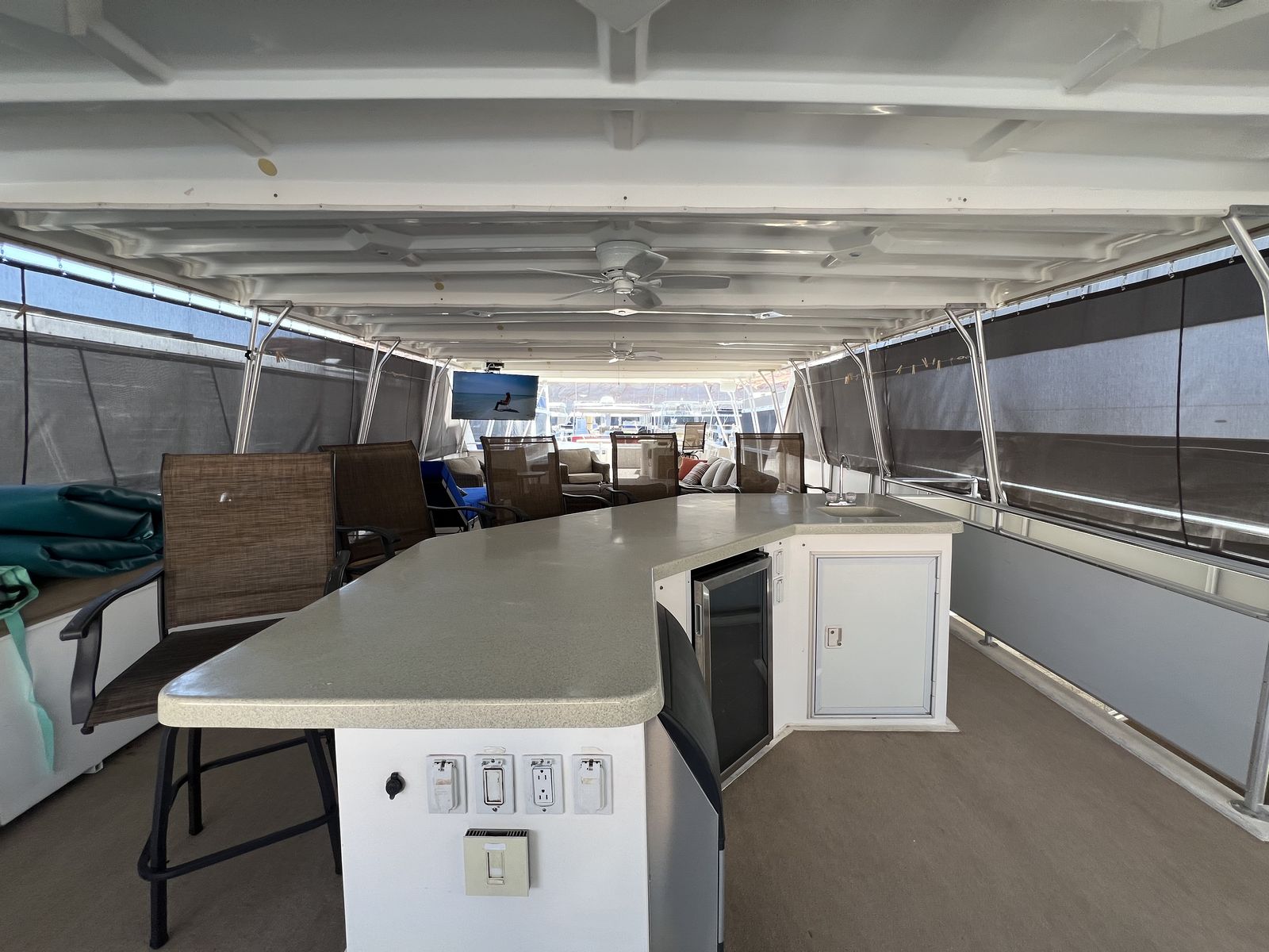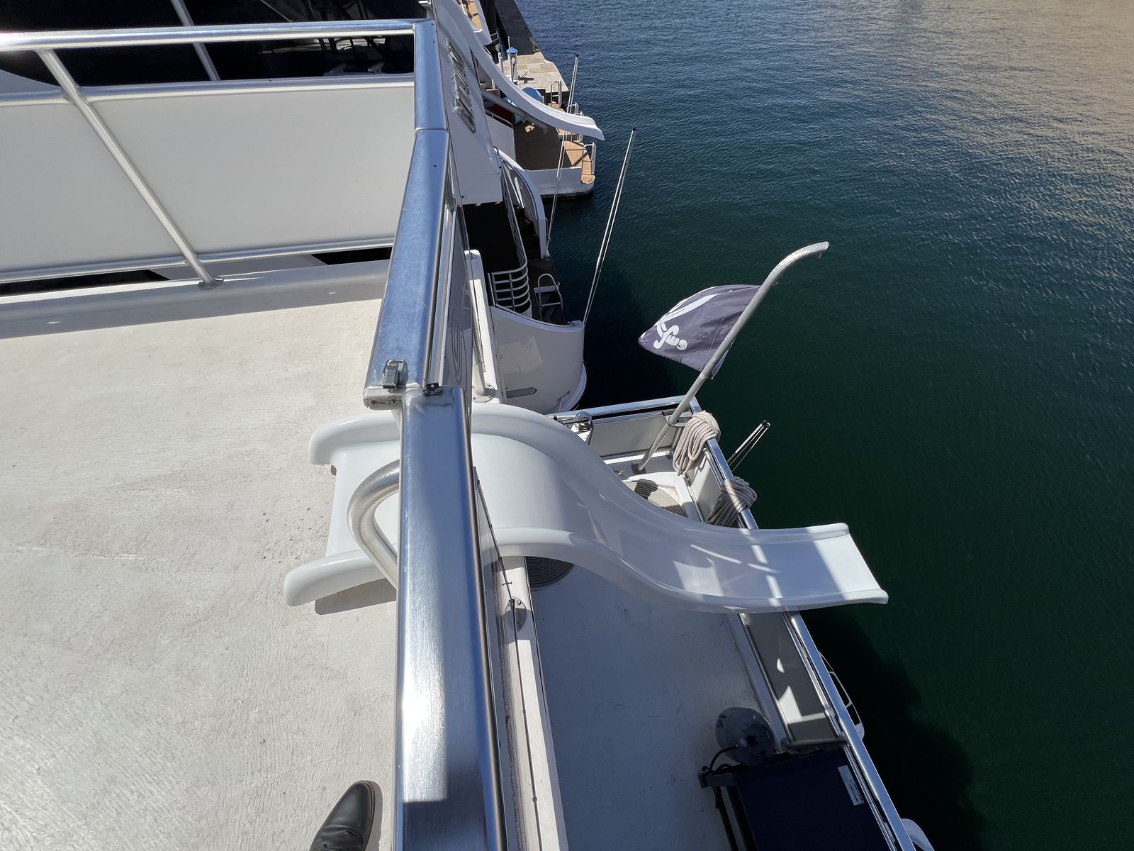 Lake Bumz is a wide custom-built houseboat with features rarely found in standard production models, including: