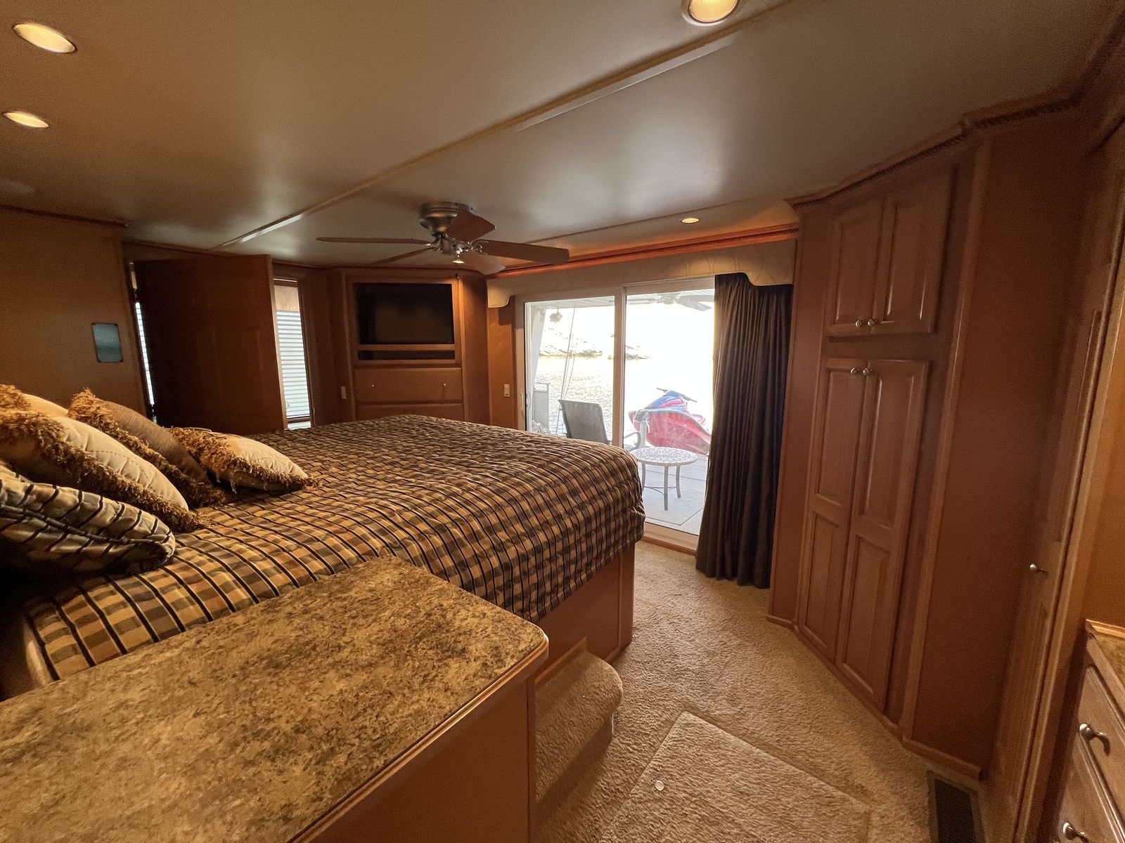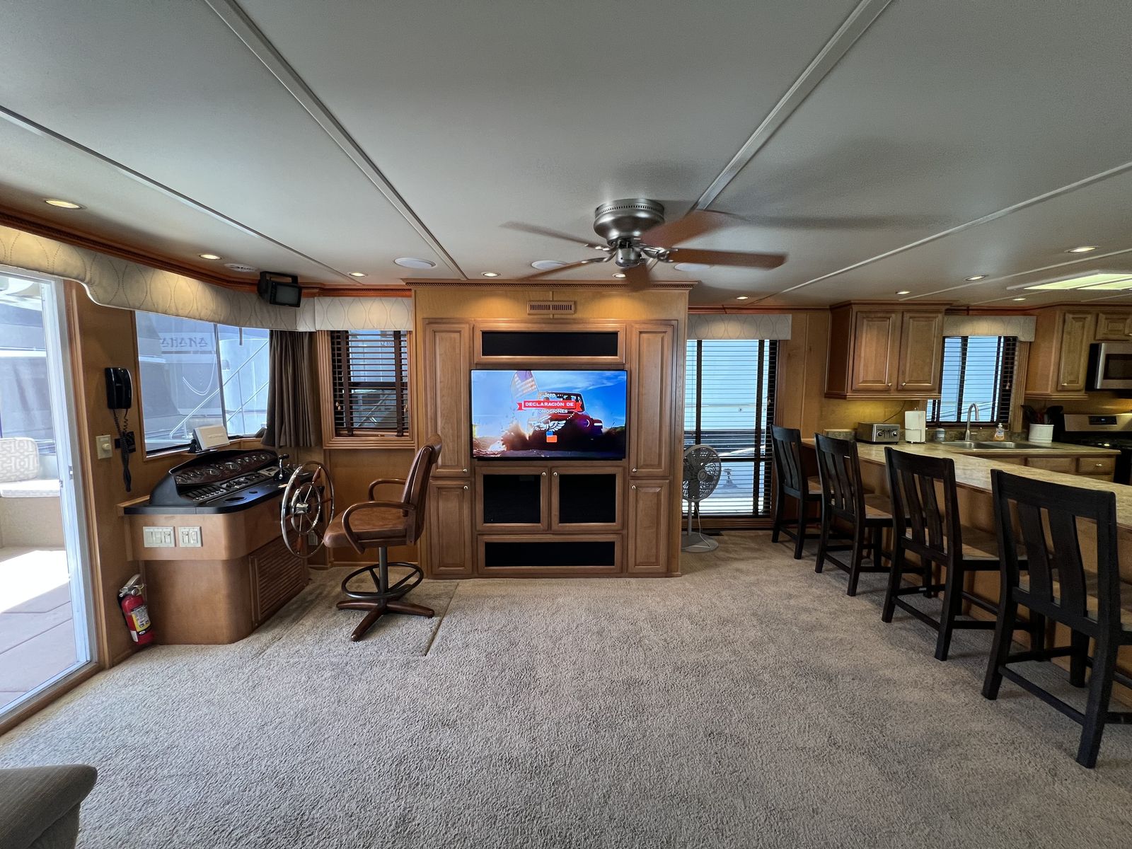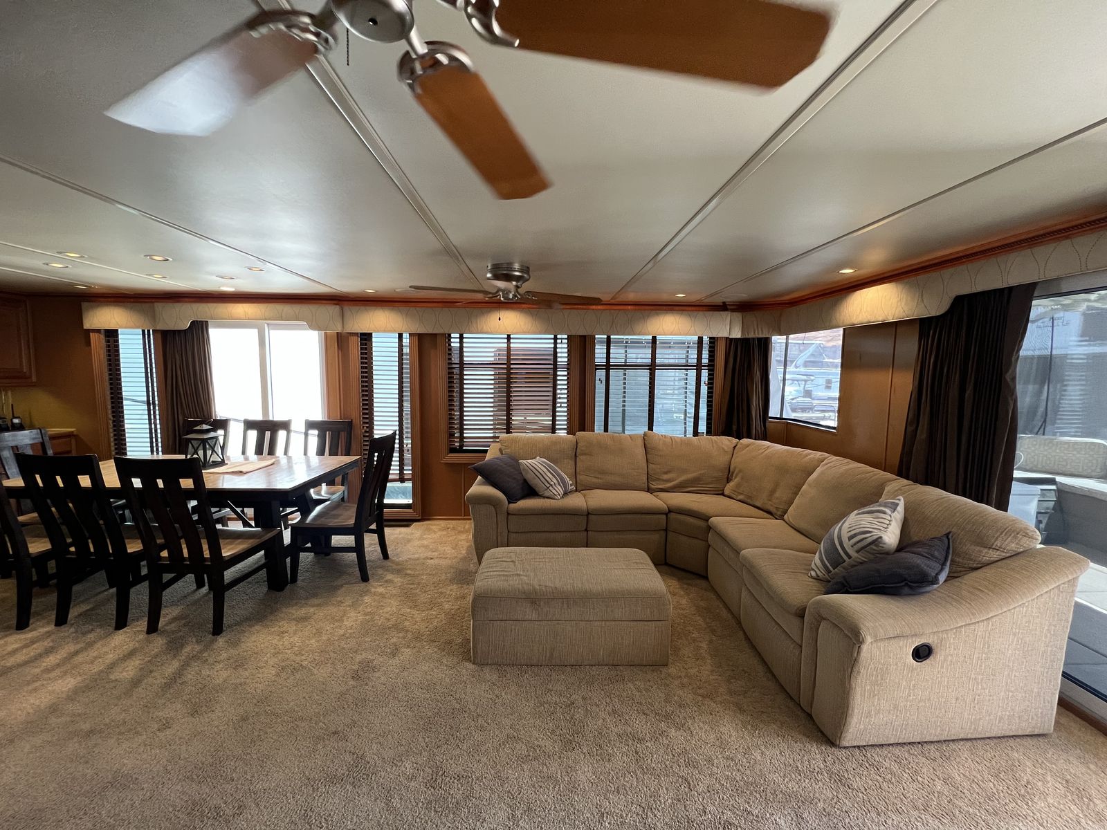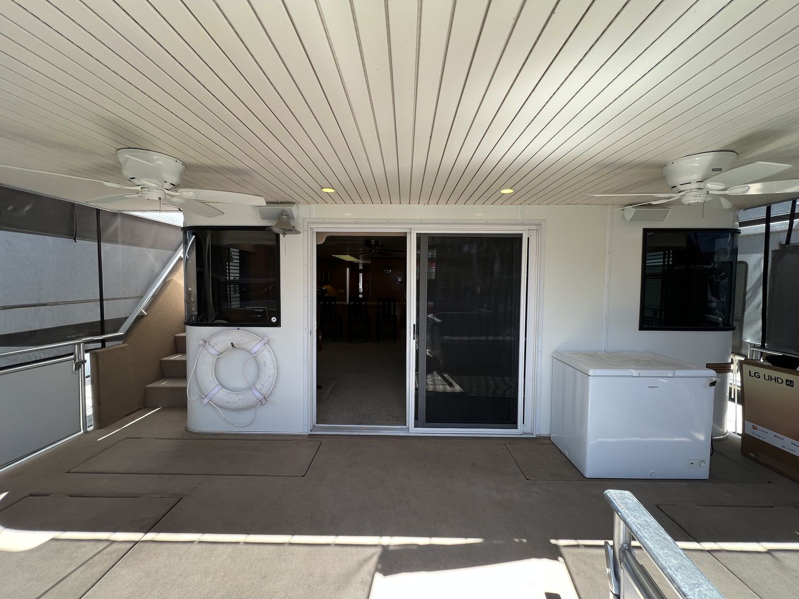 Lake Bumz is a wide custom-built houseboat with features rarely found in standard production models, including: