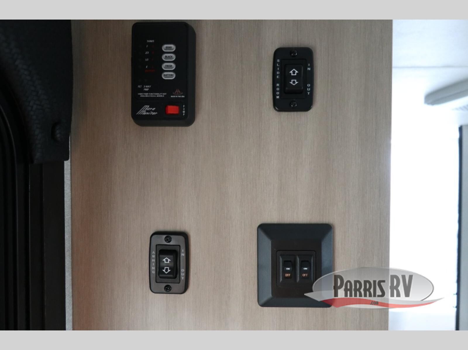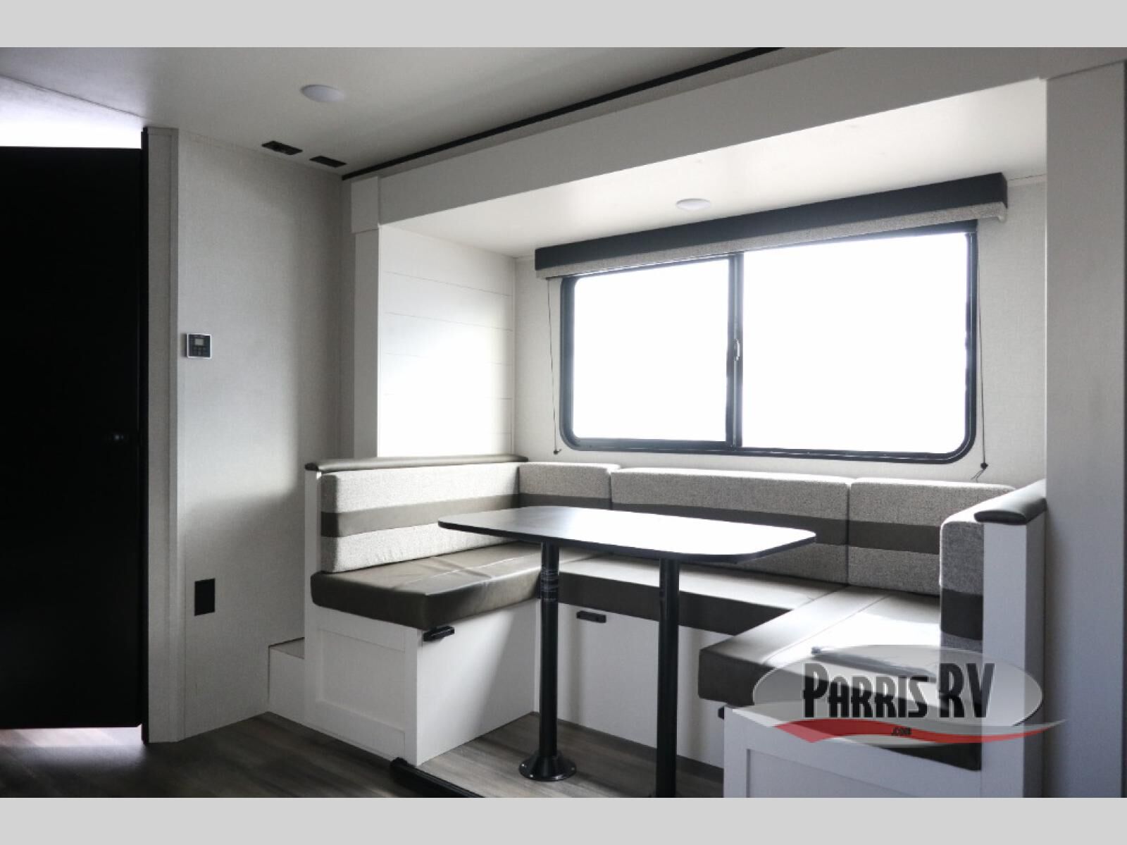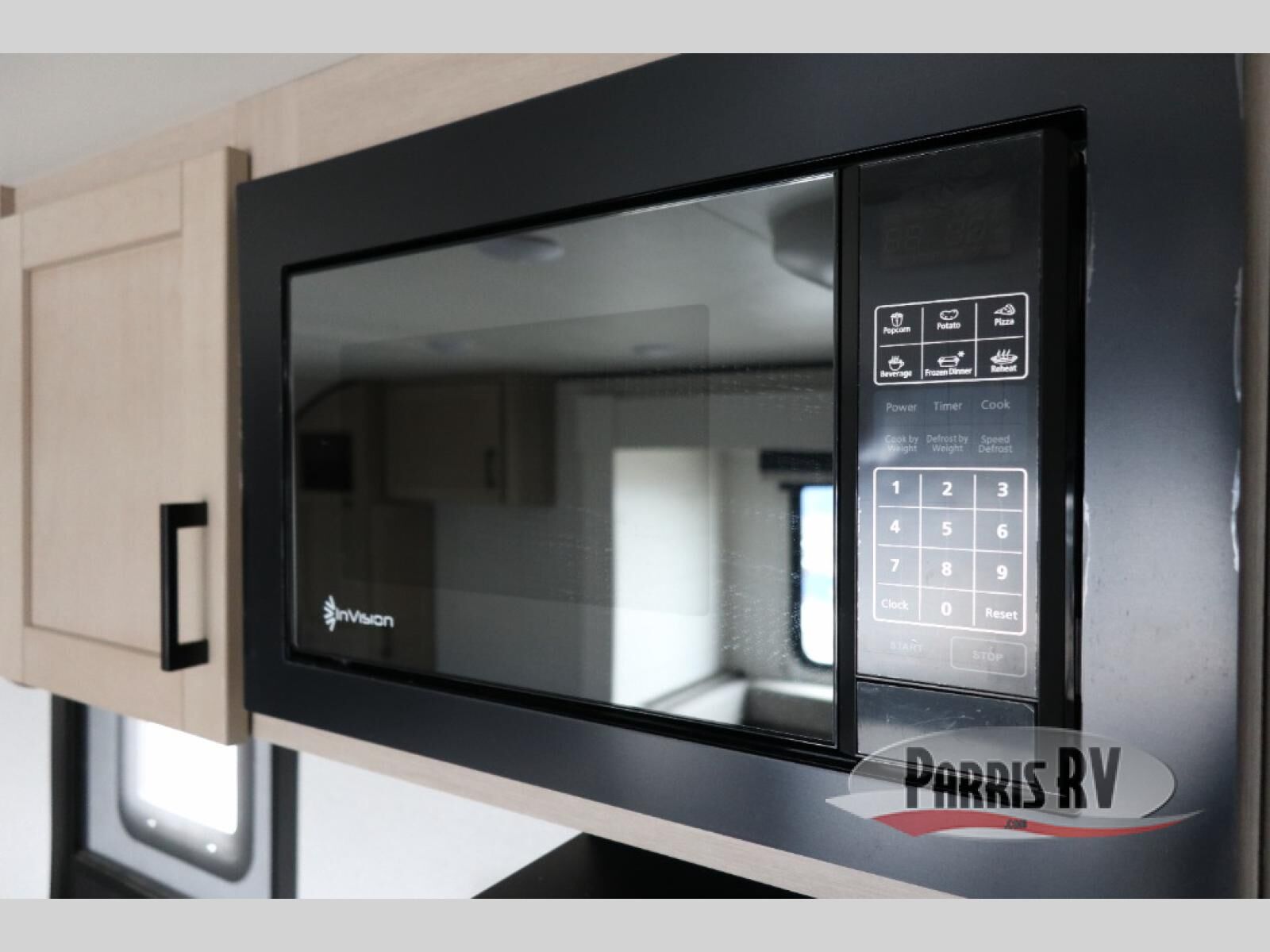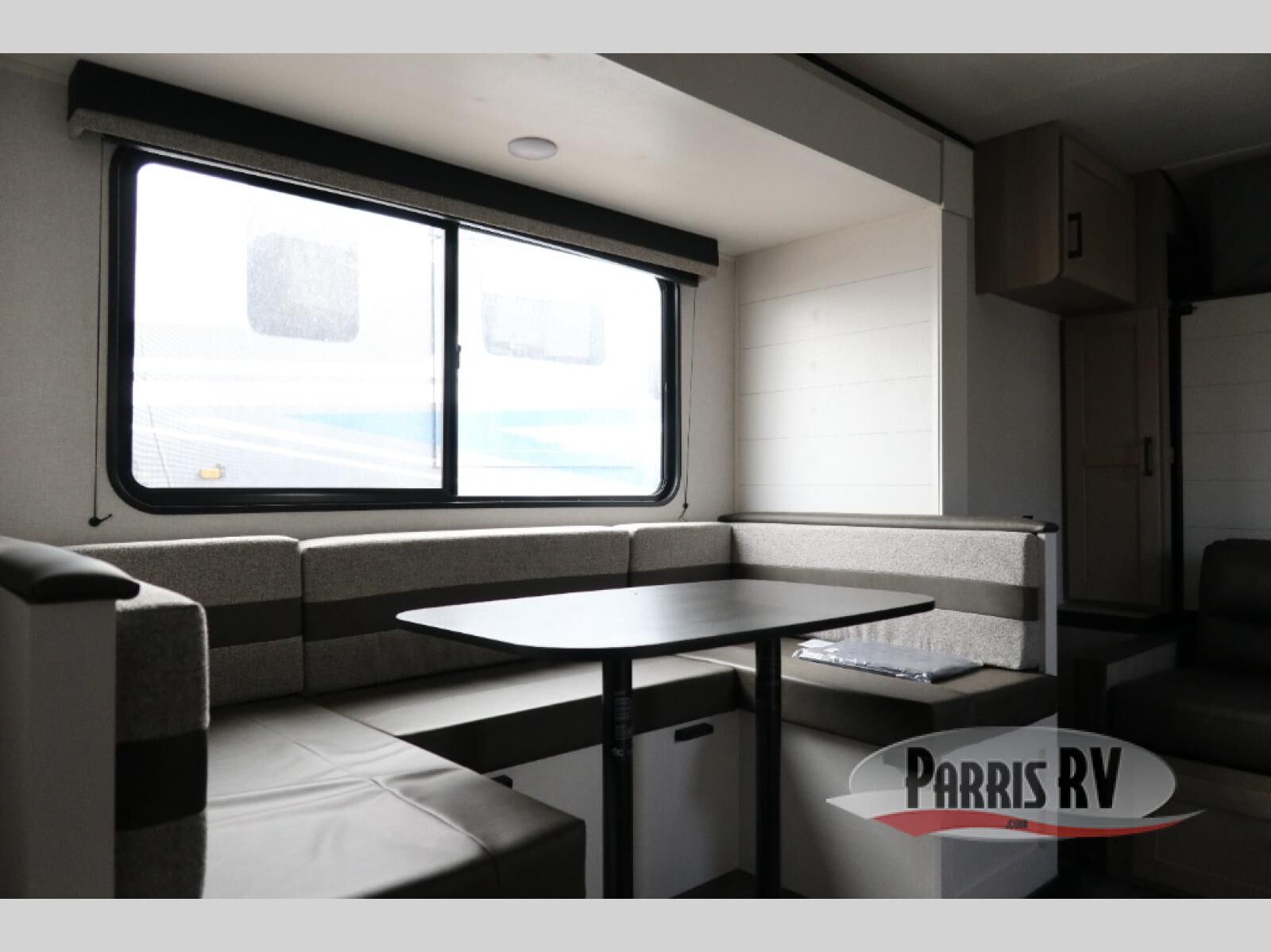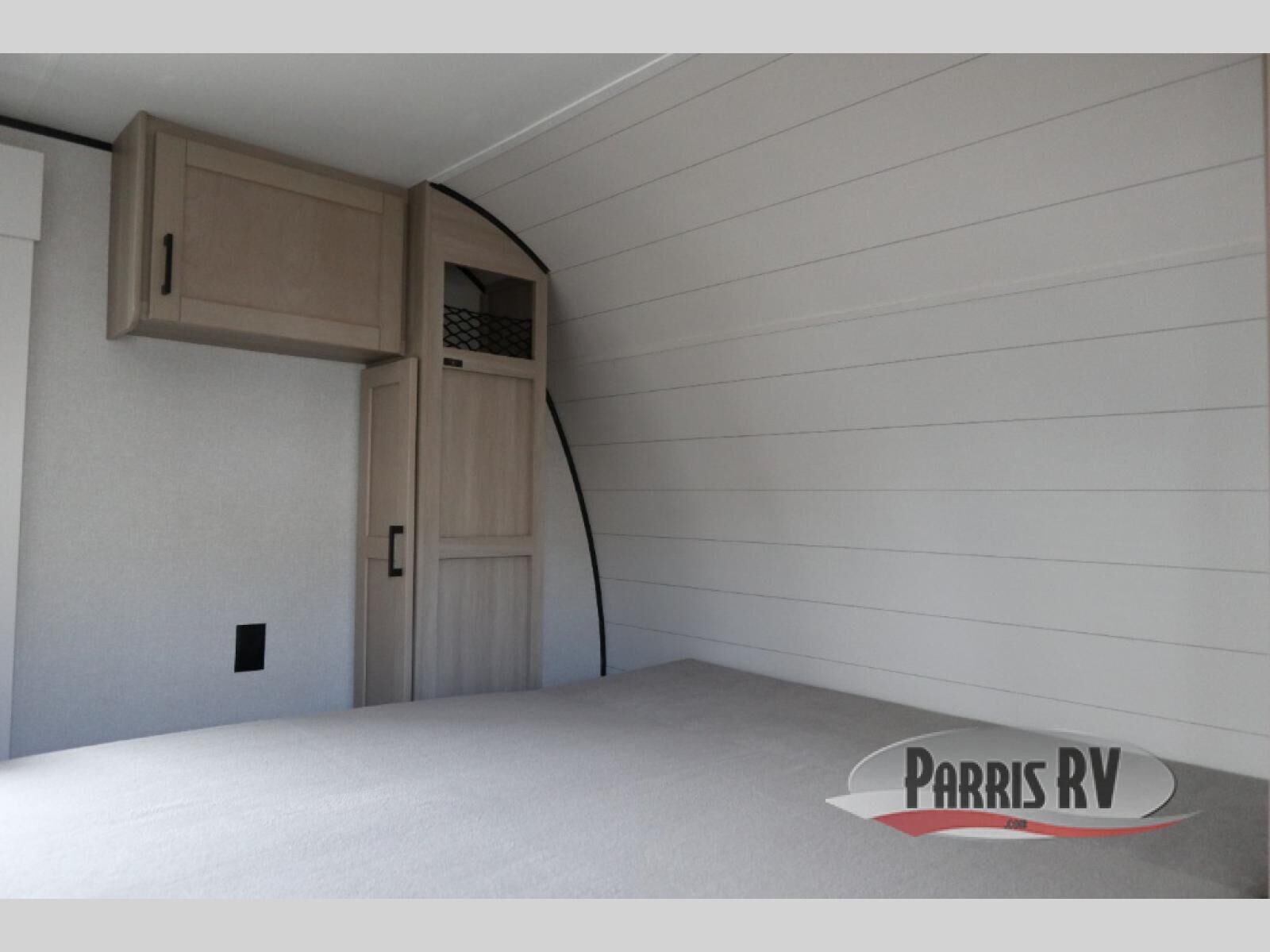 This travel trailer features compact sleeping spaces thanks to the double-size bunk beds in the rear corner, and the private full bath is right next to the bunks for easy nighttime use! You'll have the front Murphy bed all to yourselves, and in the morning, you can fold it away to sit on the jack-knife sofa. A cooktop and microwave oven will let you make meals each day, and there is a 12V refrigerator to keep your cold items fresh. Outside, you'll enjoy the 13' power awning for added shade, and there are two exterior storage compartments to keep fishing poles, hiking gear and more!