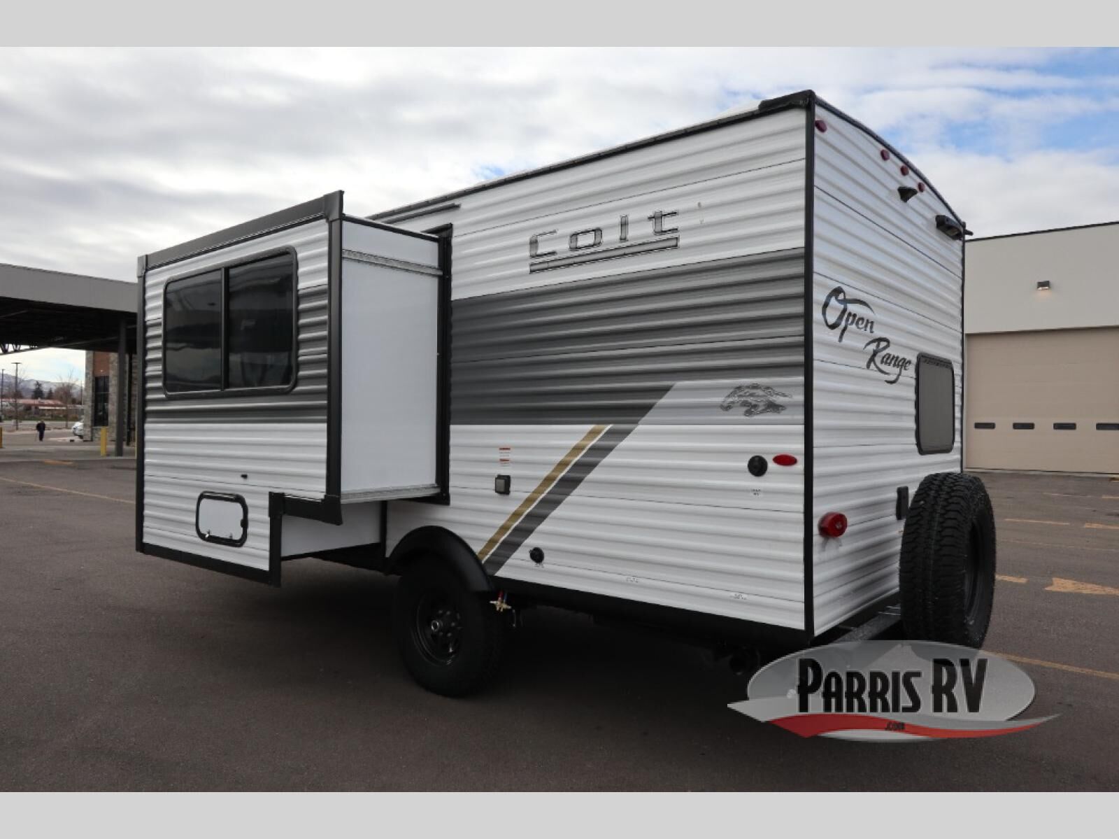 With any Colt travel trailer by Open Range RV, you can be sure you're getting a budget-friendly unit designed to fit your lifestyle! Each one is built to last with a PVC roofing membrane and built-in A-frame, plus there are nitrogen-filled radial tires and self-adjusting electric brakes for easy towing. You will appreciate the utilities that include 30-amp service, an A/C unit, and an on-demand tankless water heater. A few interior comforts include vinyl flooring throughout, solid hardwood cabinet doors, and residential grade kitchen countertops to make your space feel more like home. There are additional features available, depending on the edition you choose, along with available options to further customize your Colt travel trailer!