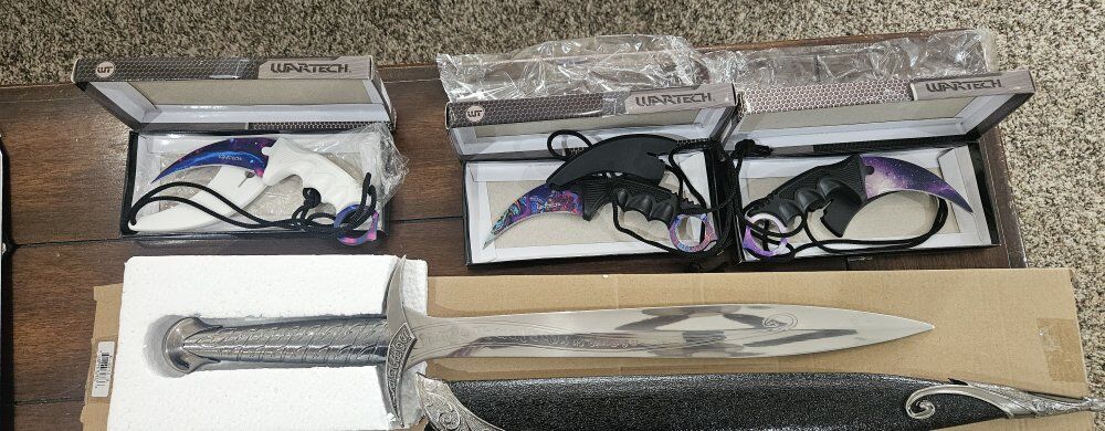 Venmoselling this lot of 13 sword, katana and knives. some sharp some not. pretty cool