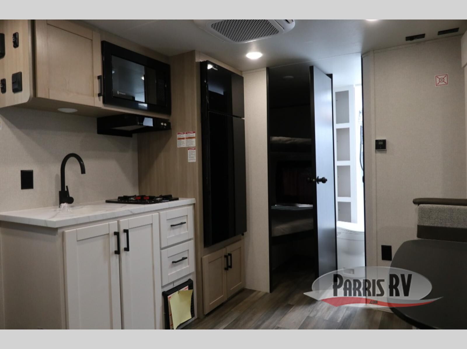 This travel trailer features compact sleeping spaces thanks to the double-size bunk beds in the rear corner, and the private full bath is right next to the bunks for easy nighttime use! You'll have the front Murphy bed all to yourselves, and in the morning, you can fold it away to sit on the jack-knife sofa. A cooktop and microwave oven will let you make meals each day, and there is a 12V refrigerator to keep your cold items fresh. Outside, you'll enjoy the 13' power awning for added shade, and there are two exterior storage compartments to keep fishing poles, hiking gear and more!