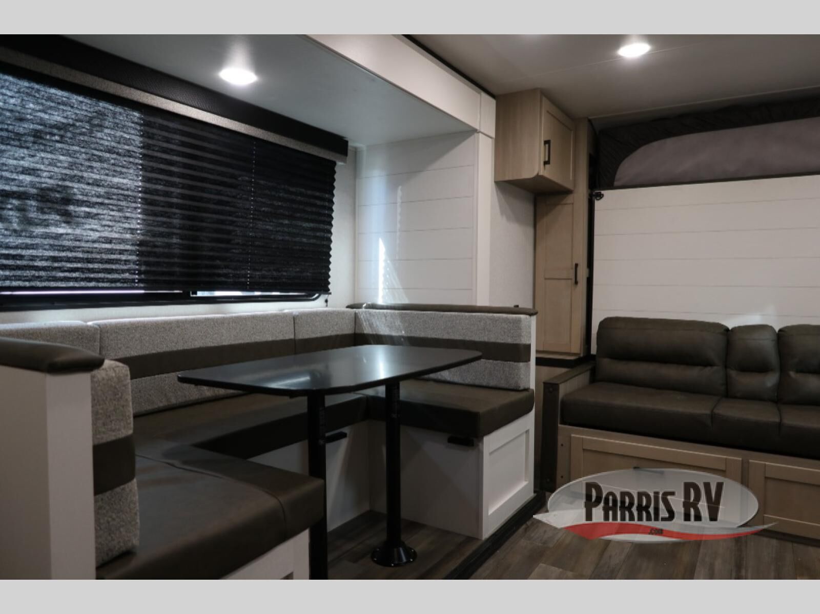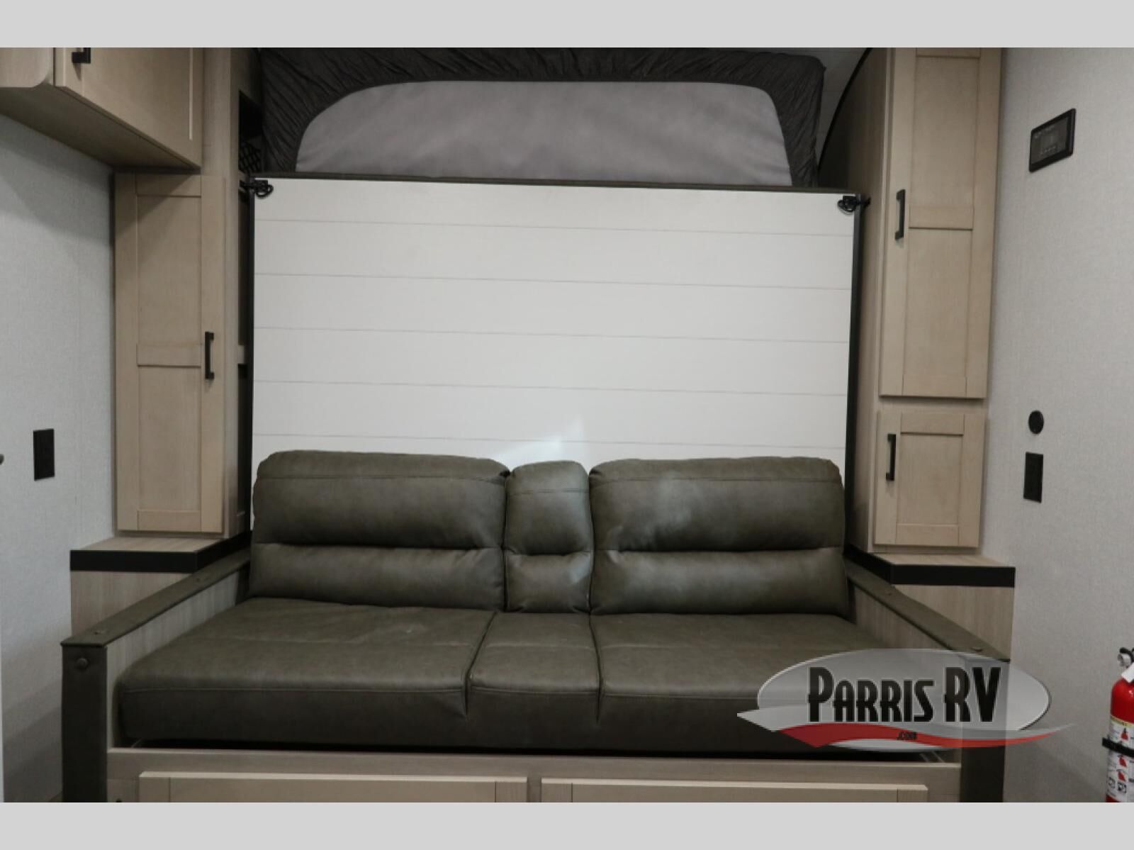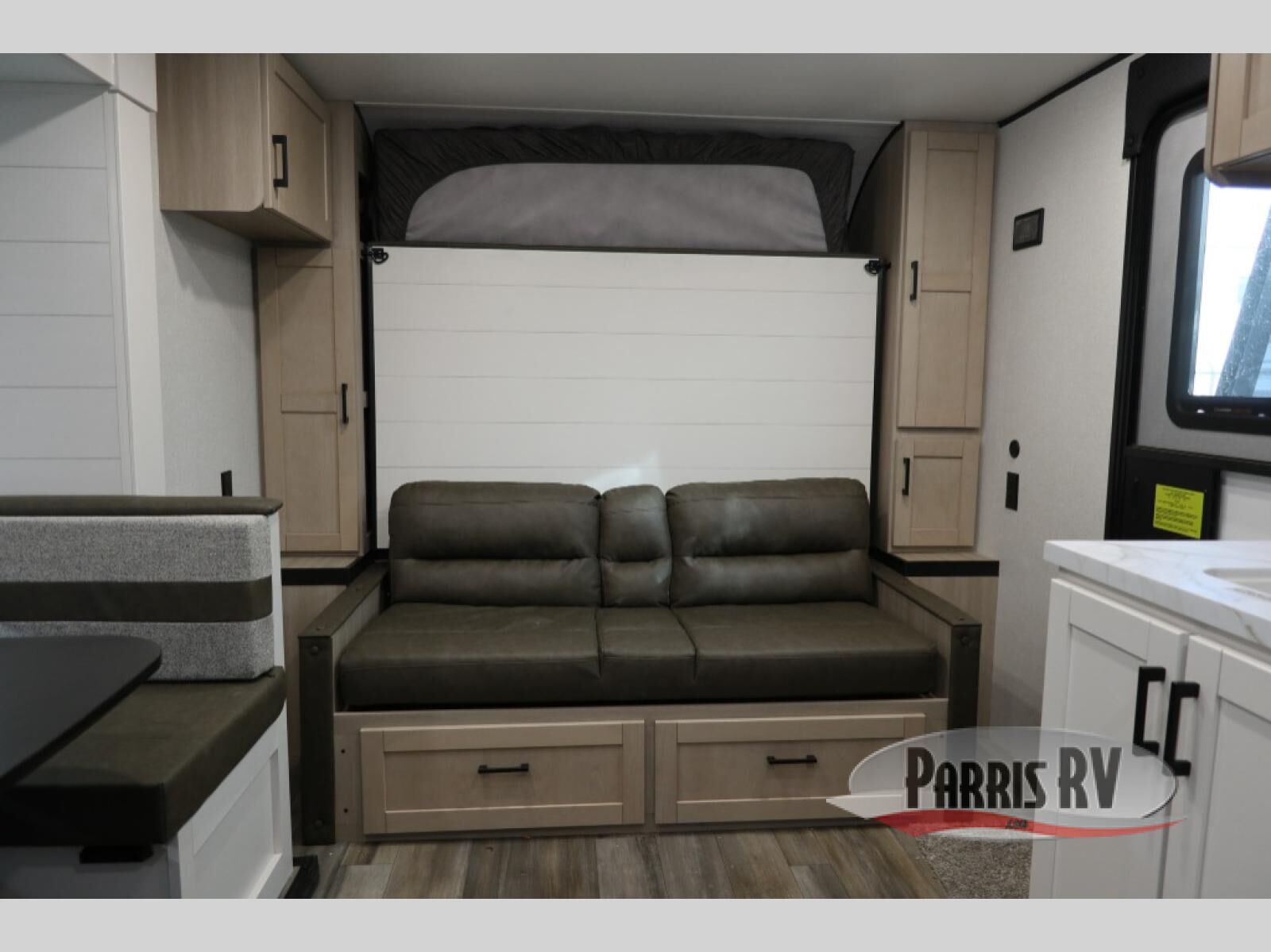 This travel trailer features compact sleeping spaces thanks to the double-size bunk beds in the rear corner, and the private full bath is right next to the bunks for easy nighttime use! You'll have the front Murphy bed all to yourselves, and in the morning, you can fold it away to sit on the jack-knife sofa. A cooktop and microwave oven will let you make meals each day, and there is a 12V refrigerator to keep your cold items fresh. Outside, you'll enjoy the 13' power awning for added shade, and there are two exterior storage compartments to keep fishing poles, hiking gear and more!