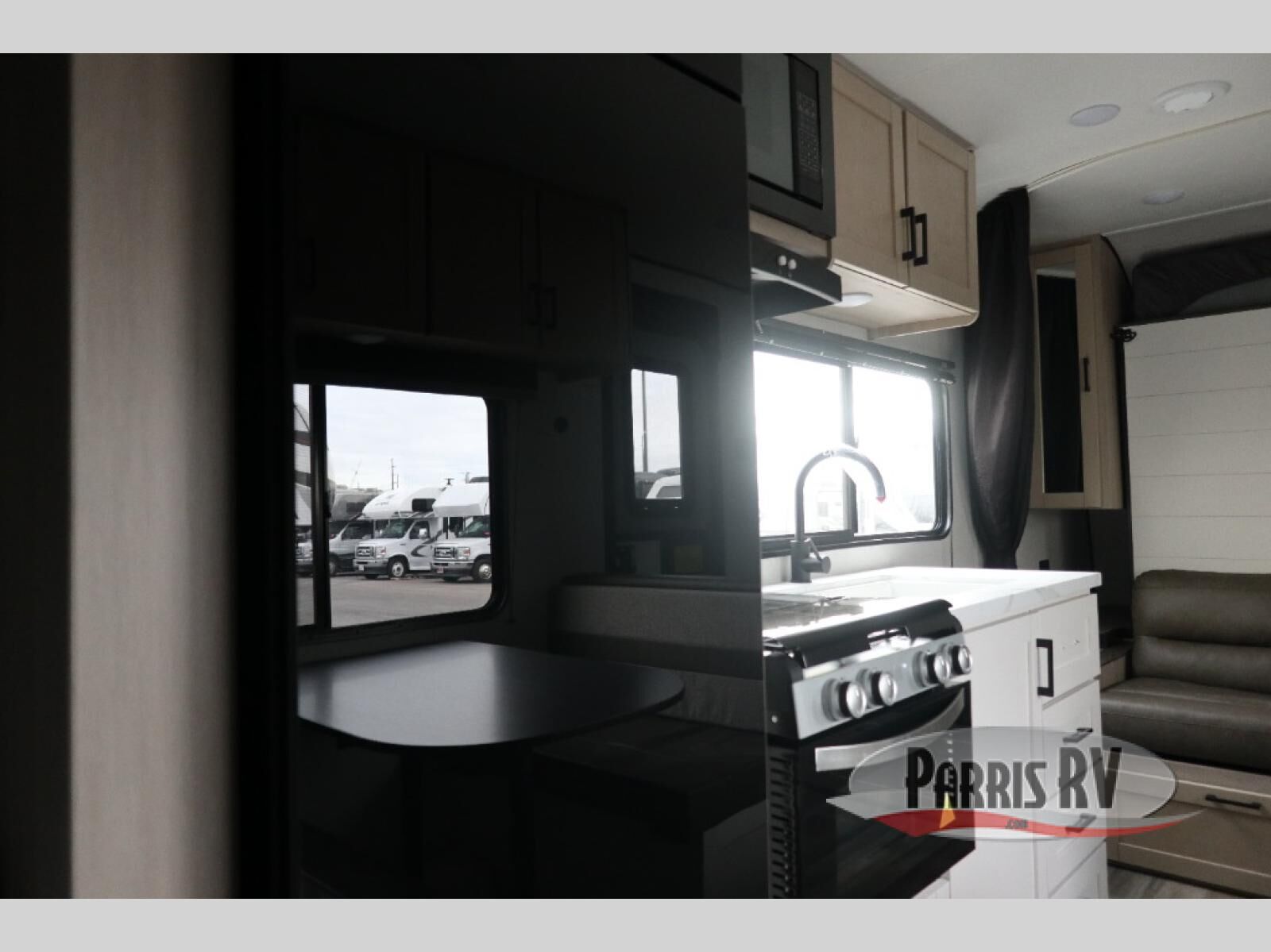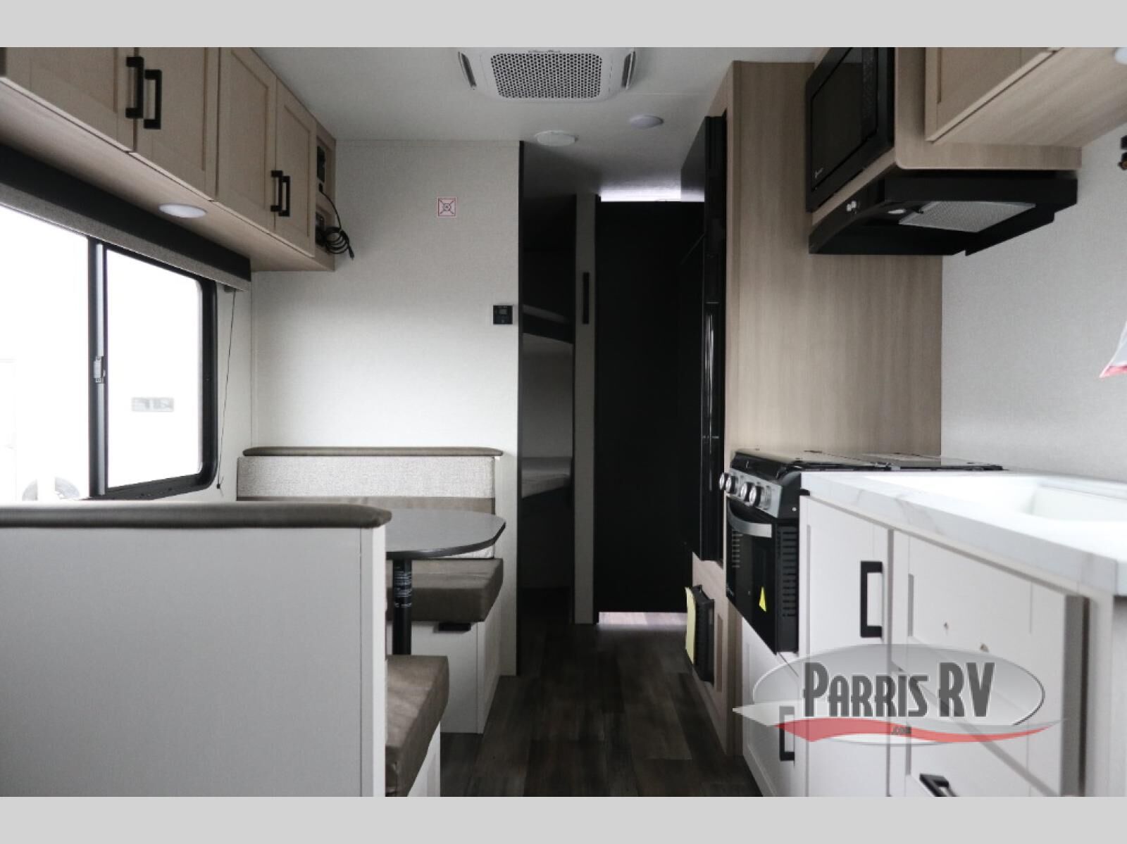 This travel trailer features compact sleeping spaces thanks to the double-size bunk beds in the rear corner, and the private full bath is right next to the bunks for easy nighttime use! You'll have the front Murphy bed all to yourselves, and in the morning, you can fold it away to sit on the jack-knife sofa. A three-burner cooktop and microwave oven will let you make meals each day, and there is a 12V refrigerator to keep your cold items fresh. Outside, you'll enjoy the 13' power awning with LED lights for added shade, and there are two exterior storage compartments to keep fishing poles, hiking gear and more!