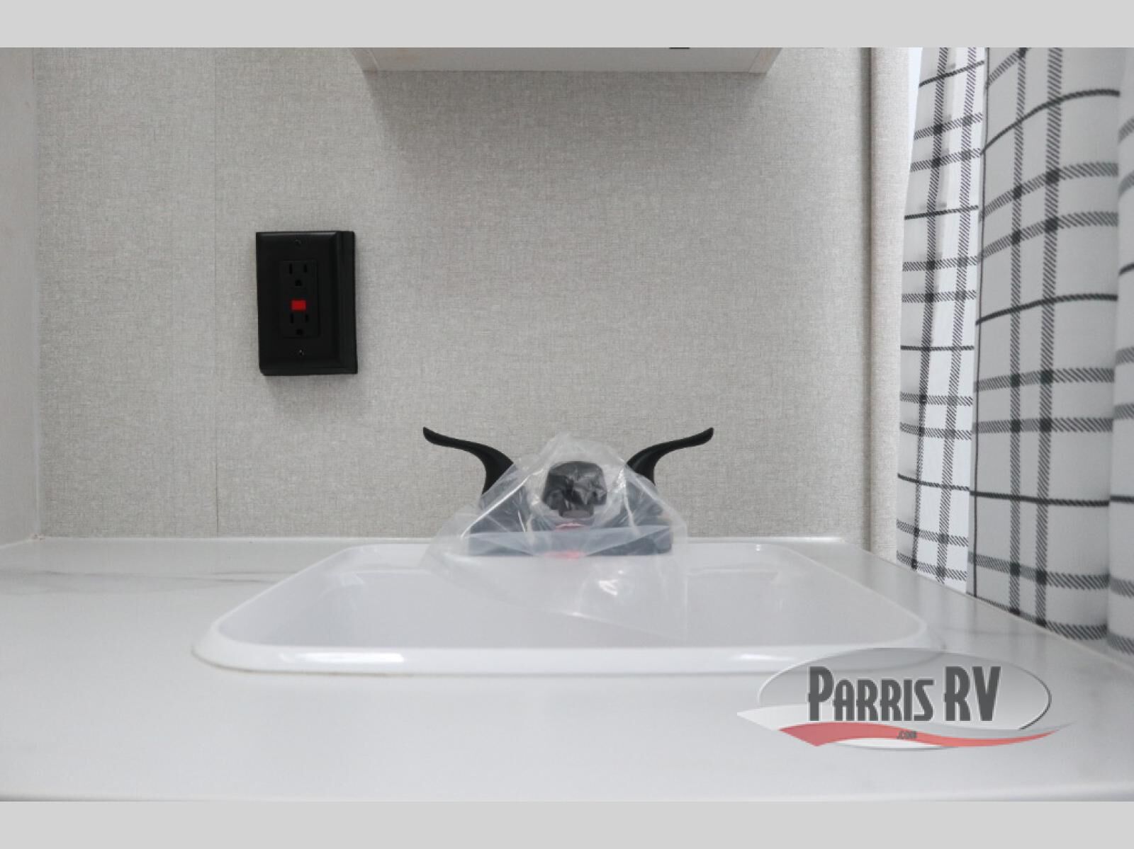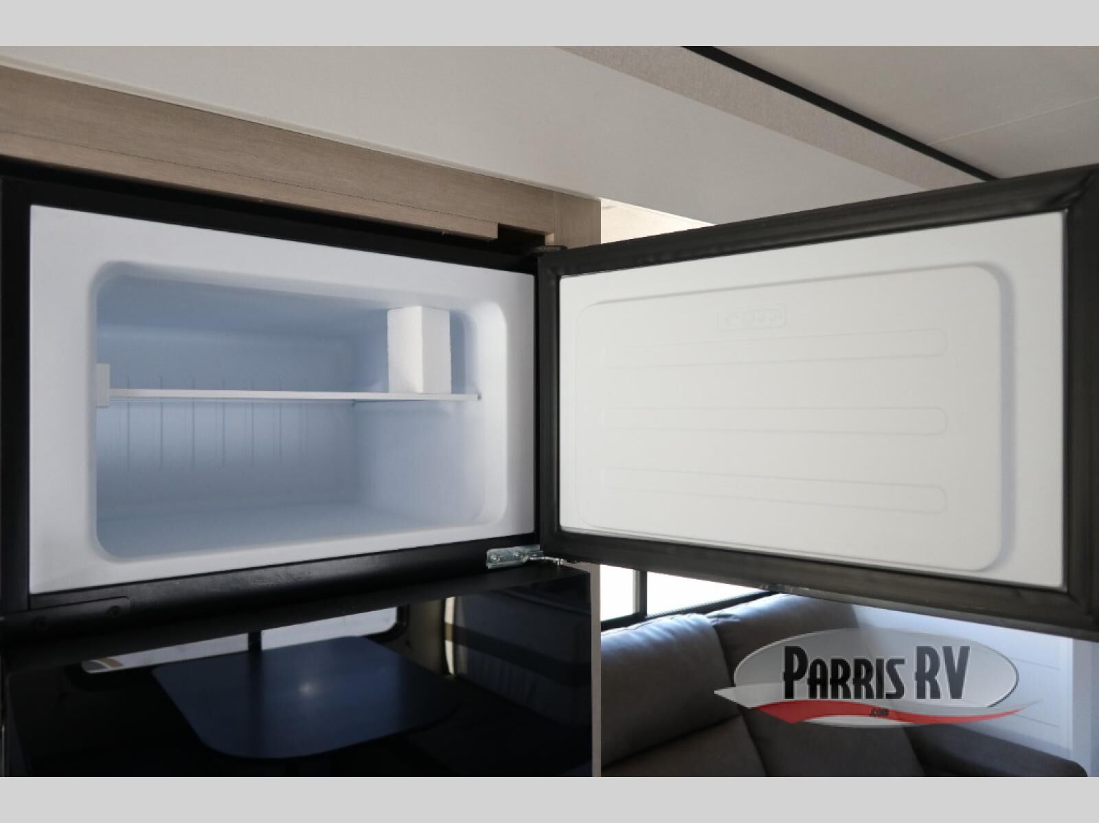This travel trailer is perfect for weekend trips to the lake! Once you arrive at the campground, you can unload the exterior storage, put out the 18' power awning with LED lights, then relax in your camp chairs. Head inside to make lunch on the three-burner cooktop in the rear corner kitchen, and you'll find the full bath in the other rear corner for quick access. A booth dinette provides a place to dine together, and a theater seat within the large slide out is sure to bring comfort. This unit includes a queen bed in the front semi-private bedroom with a privacy curtain and dual wardrobes for your things!