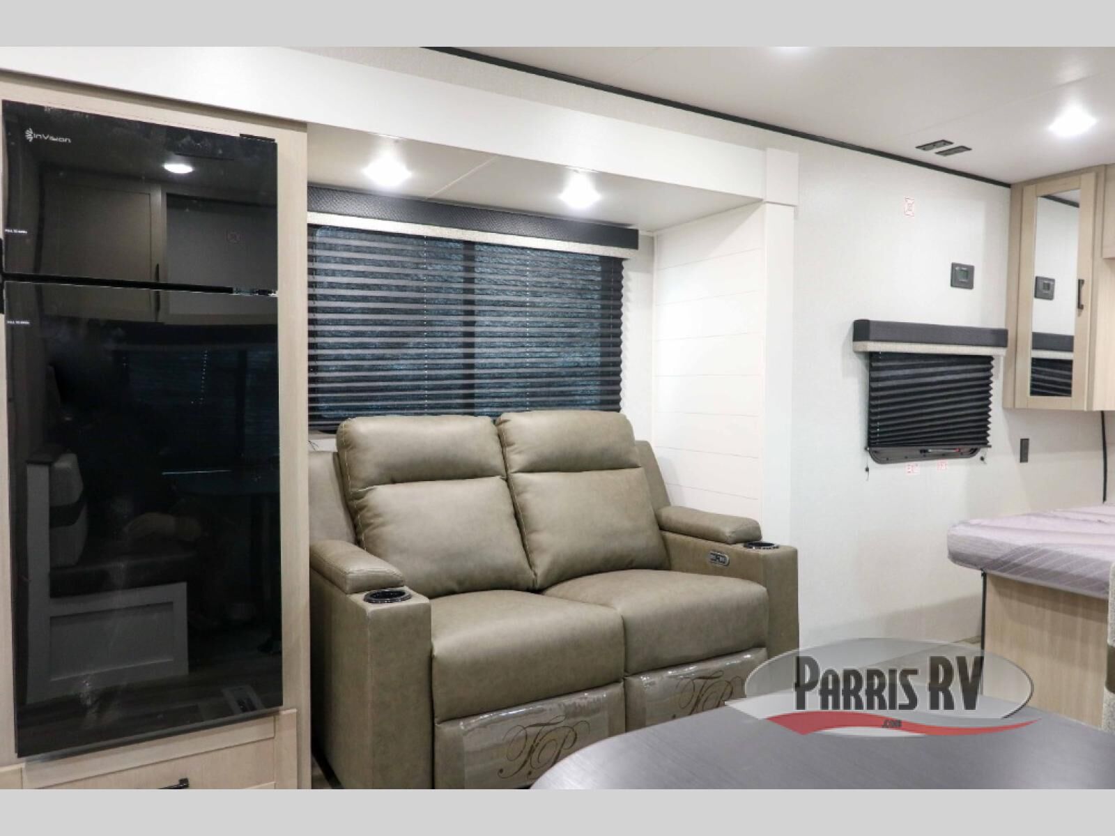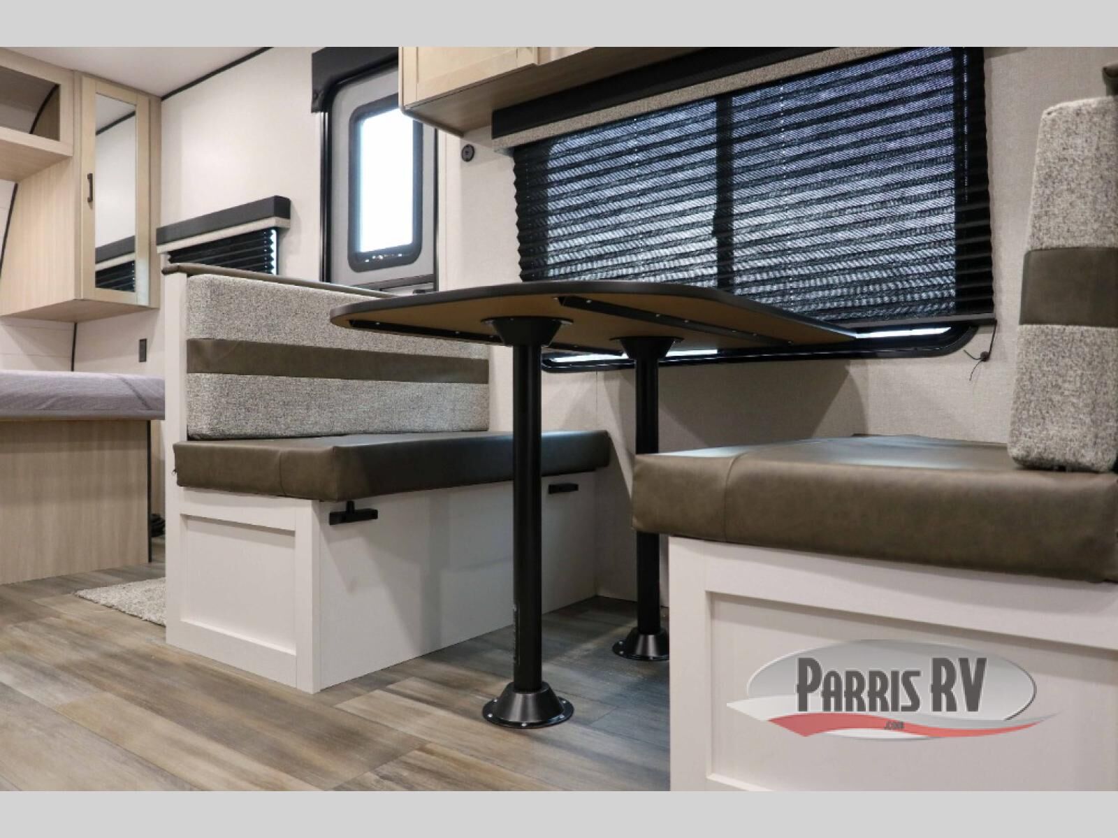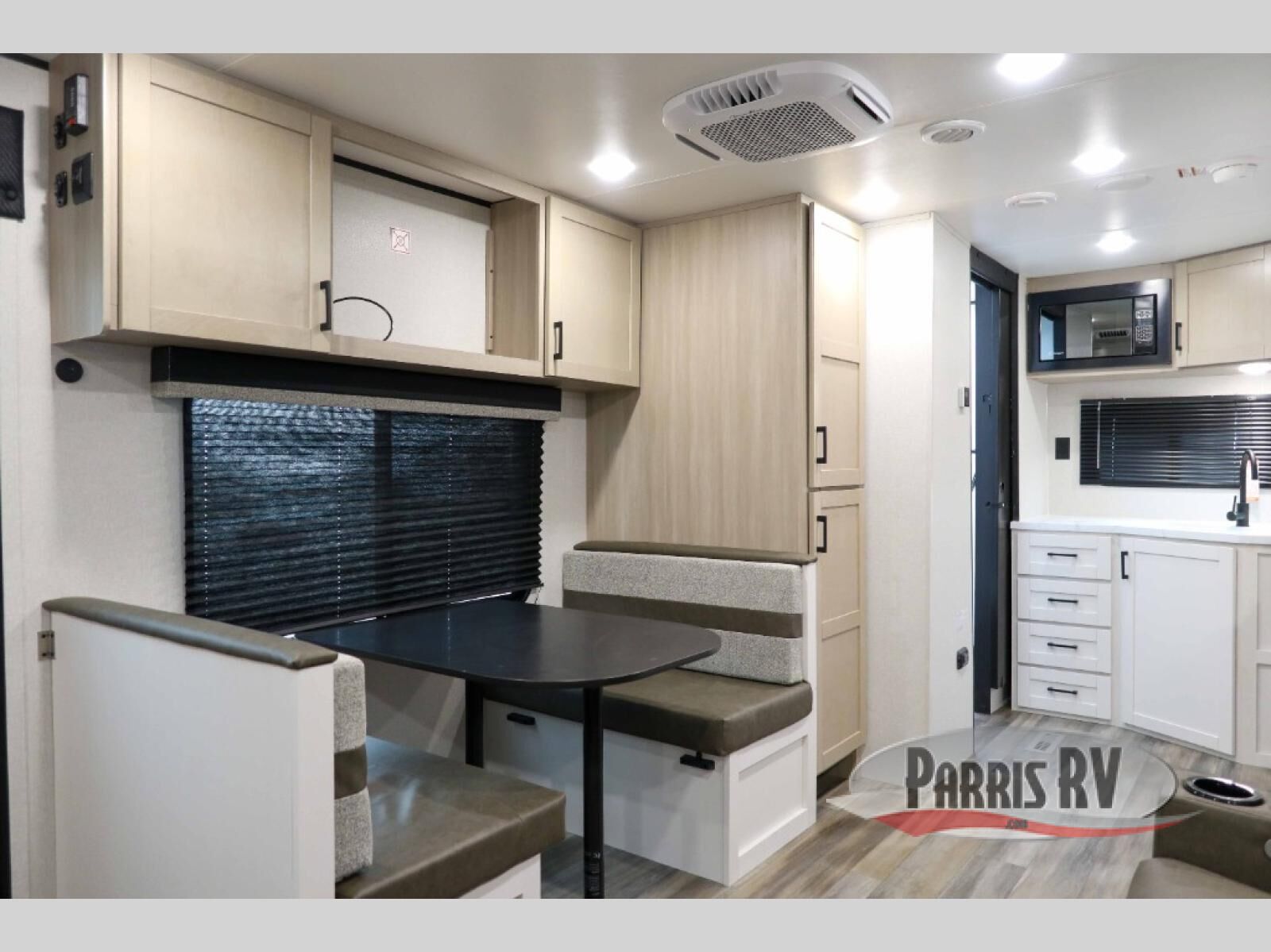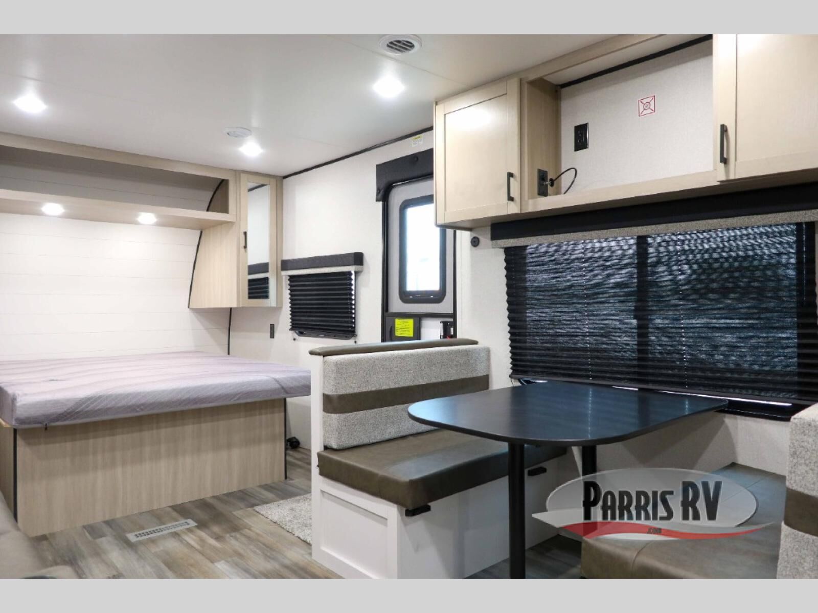 This travel trailer is perfect for weekend trips to the lake! Once you arrive at the campground, you can unload the exterior storage, put out the 18' power awning with LED lights, then relax in your camp chairs. Head inside to make lunch on the three-burner cooktop in the rear corner kitchen, and you'll find the full bath in the other rear corner for quick access. A booth dinette provides a place to dine together, and a theater seat within the large slide out is sure to bring comfort. This unit includes a queen bed in the front semi-private bedroom with a privacy curtain and dual wardrobes for your things!