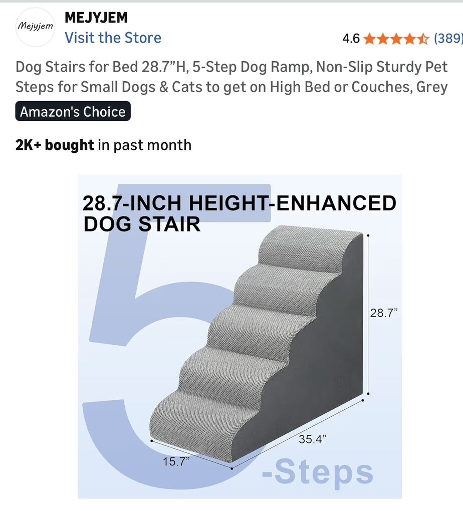 VenmoBarely used. Very sturdy foam stairs for your pet to give them a lift to your bed, couch, etc. without jumping. Great for older joints. Best for medium to small pets.