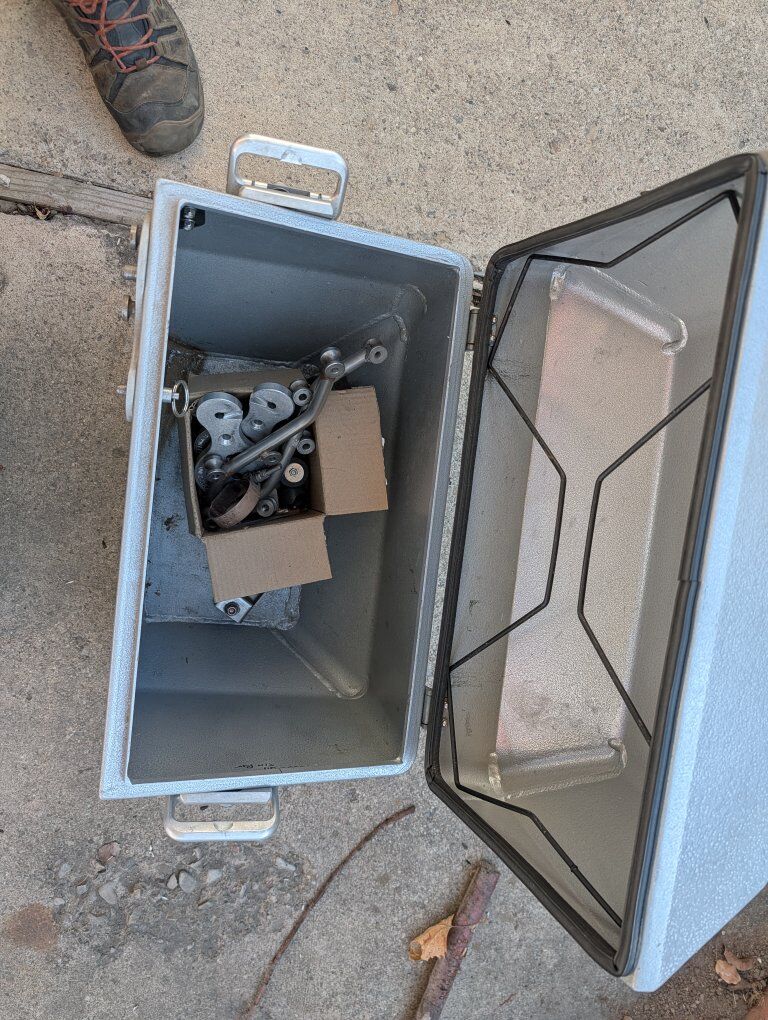 Might be missing a bolt or two but has the main custom brackets, the exhaust parts to move the muffler down to fit the pannier on that side.