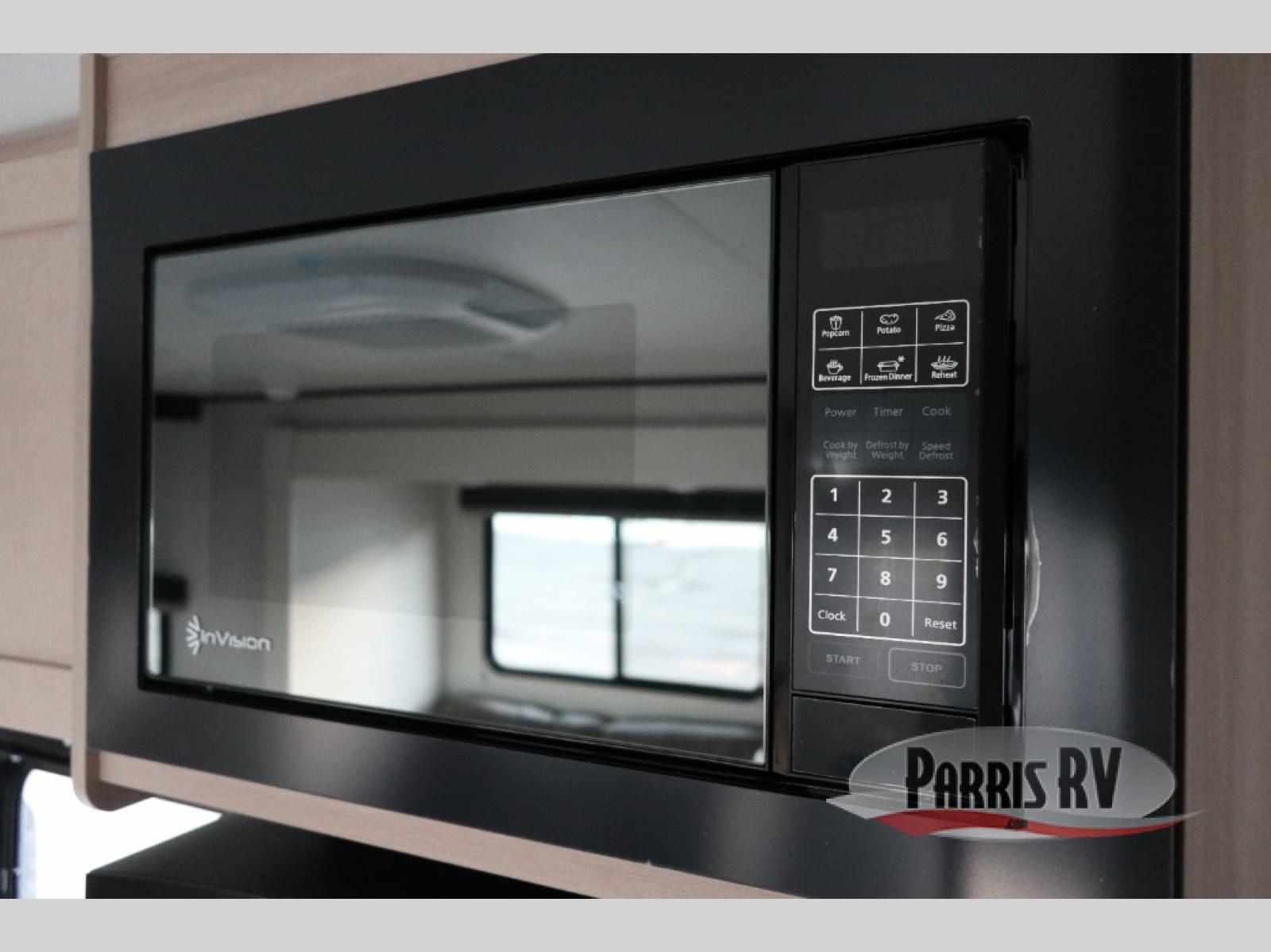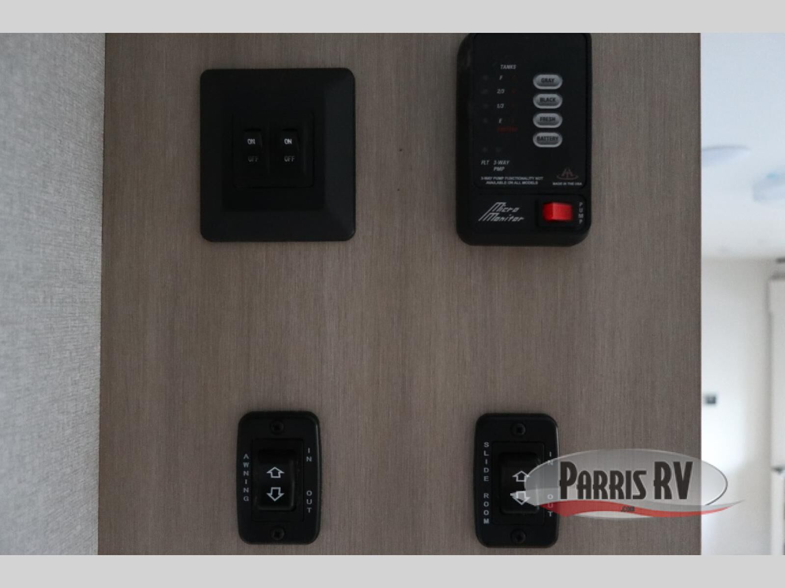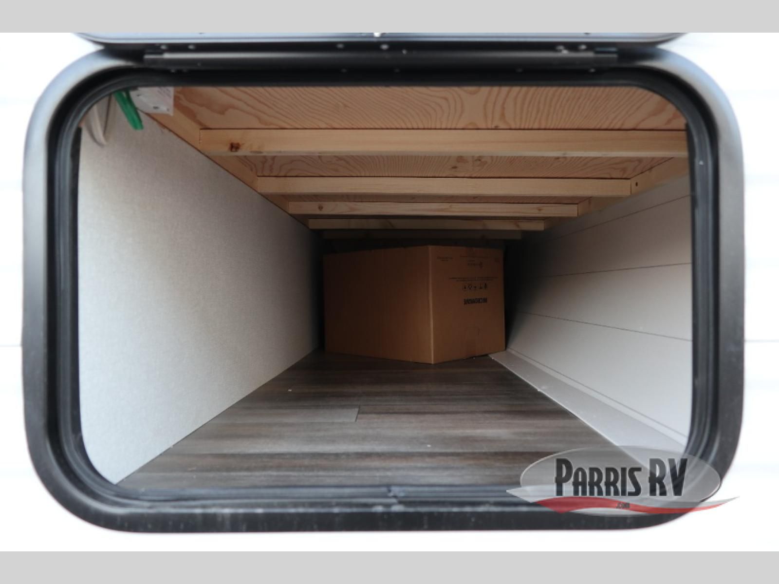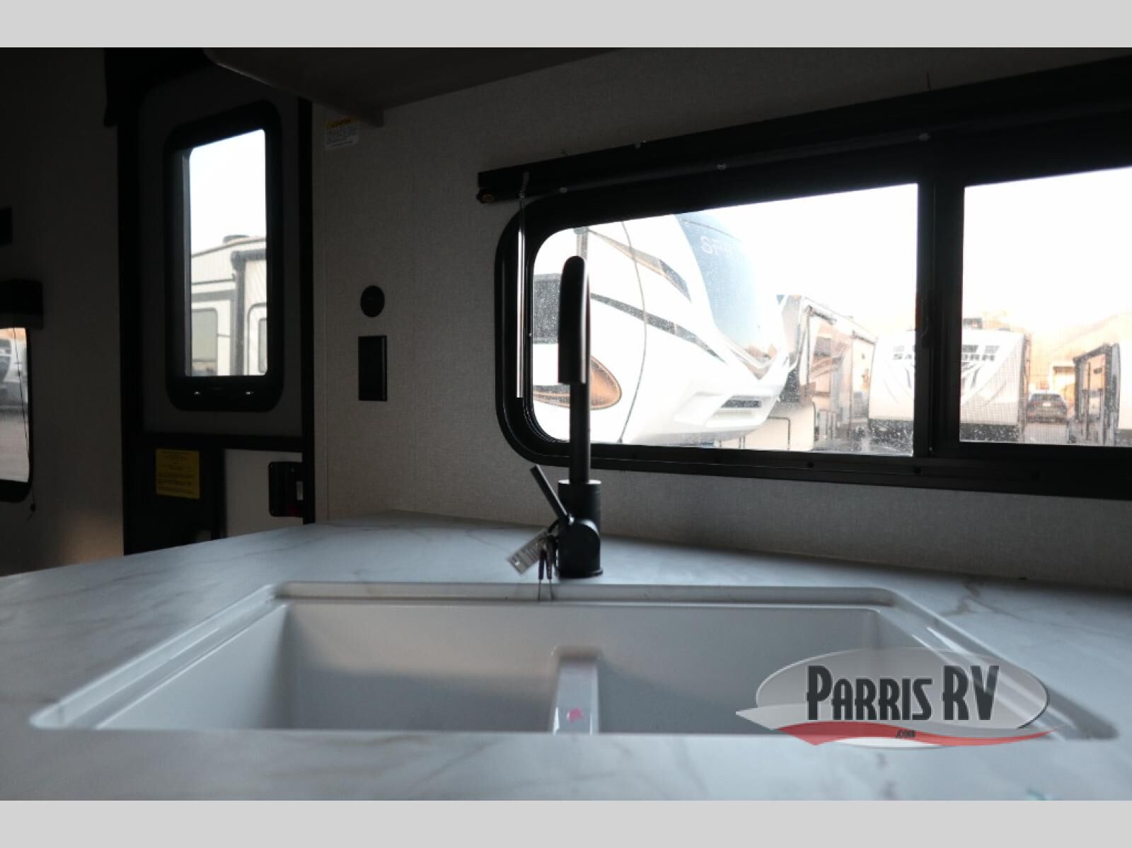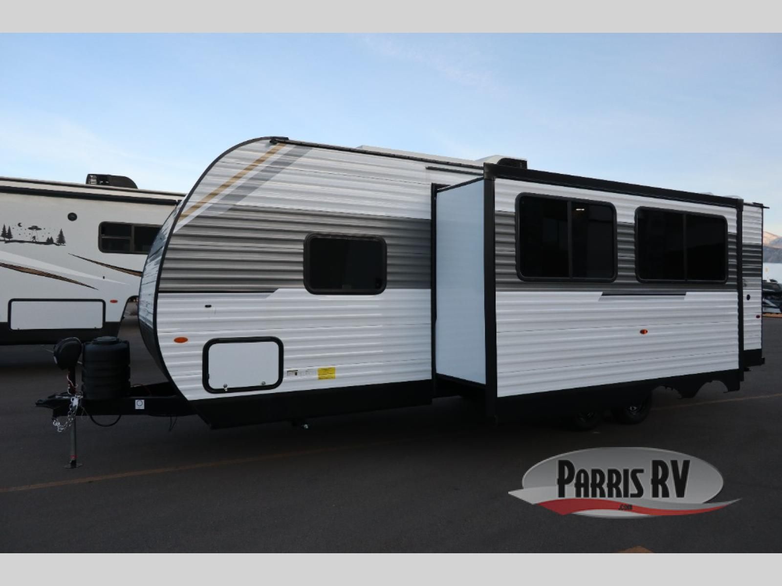 This travel trailer with double-size bunks is spacious and cozy! Once you've unloaded the exterior storage, your crew can put out the 16' power awning with LED lights, then start lunch on the outside kitchen. If the weather isn't cooperating, there is a three-burner cooktop and microwave oven inside, plus comfortable seating on the jack-knife sofa and booth dinette. You're sure to appreciate the front private bedroom with an RV queen bed, dual wardrobes, plus an overhead shelf for books, and the rear corner full bath will let everyone freshen up each day!