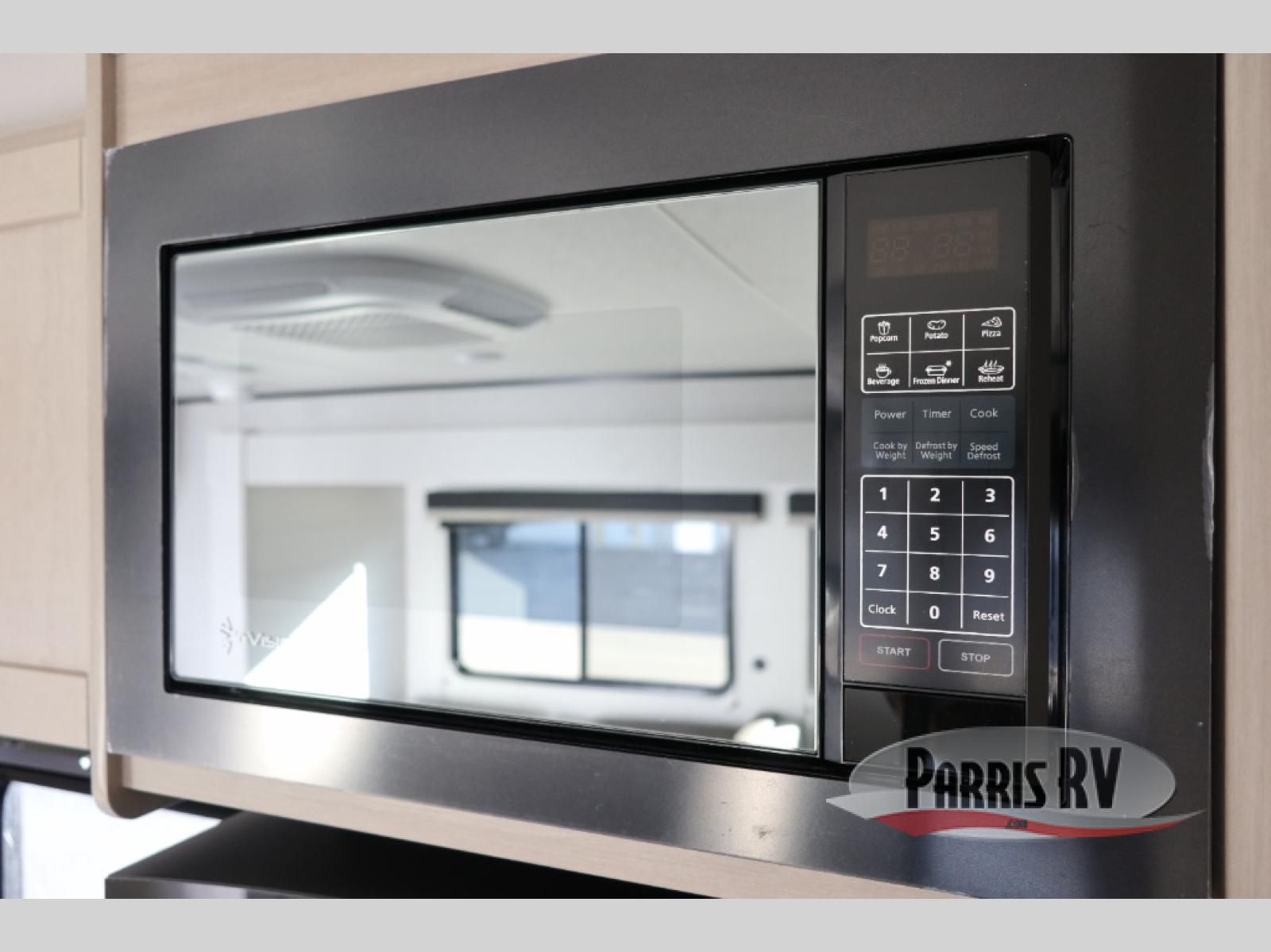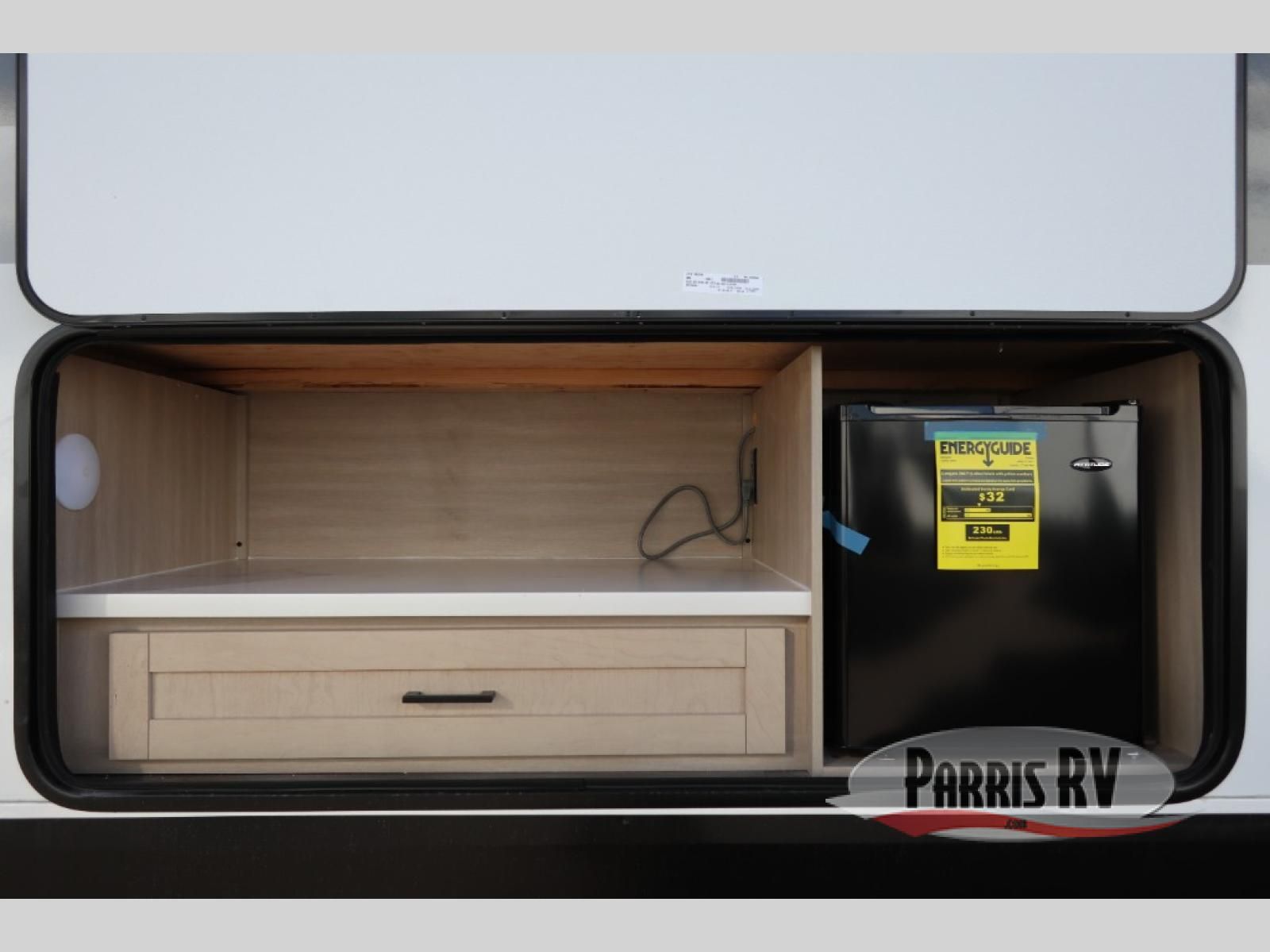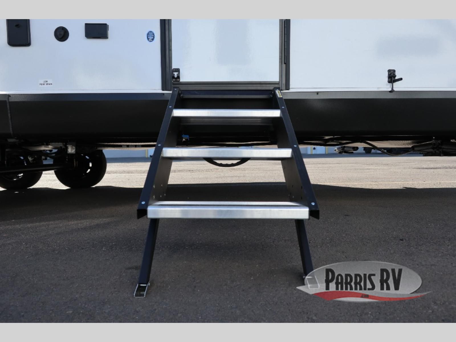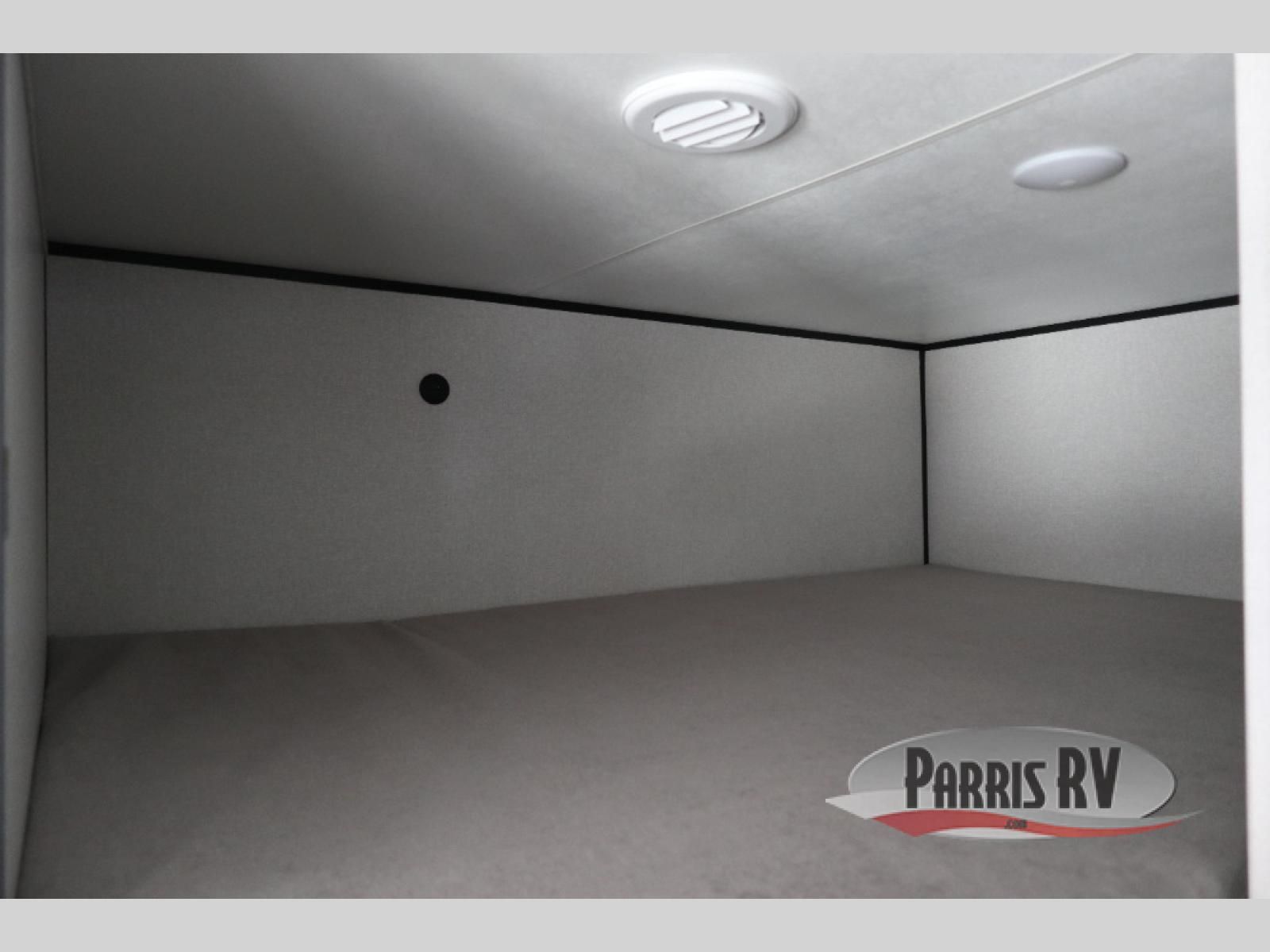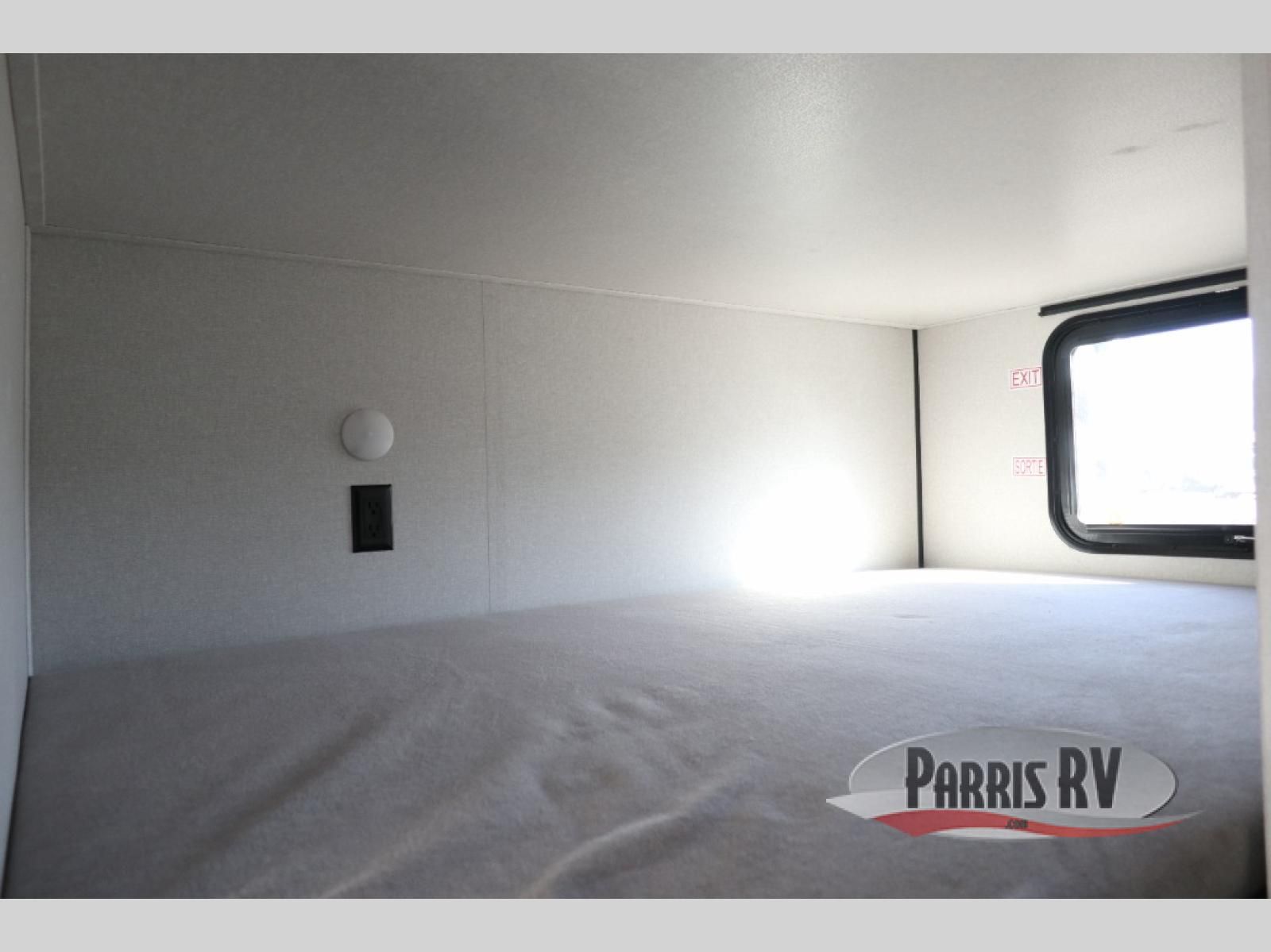 This travel trailer with double-size bunks is spacious and cozy! Once you've unloaded the exterior storage, your crew can put out the 16' power awning with LED lights, then start lunch on the outside kitchen. If the weather isn't cooperating, there is a three-burner cooktop and microwave oven inside, plus comfortable seating on the jack-knife sofa and booth dinette. You're sure to appreciate the front private bedroom with an RV queen bed, dual wardrobes, plus an overhead shelf for books, and the rear corner full bath will let everyone freshen up each day!