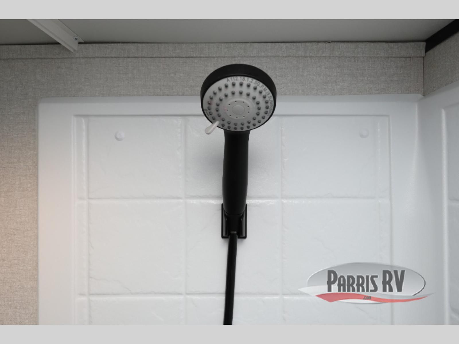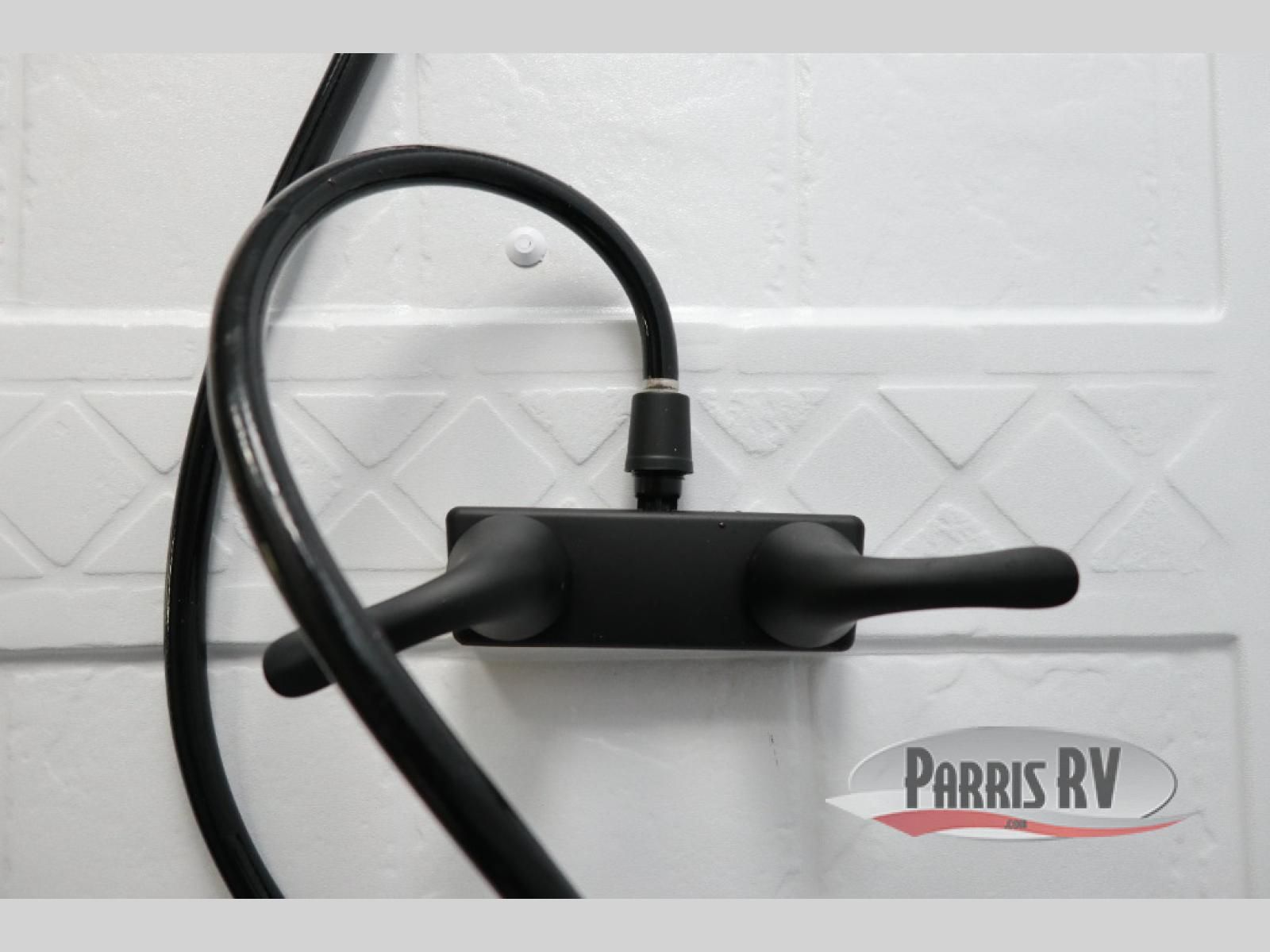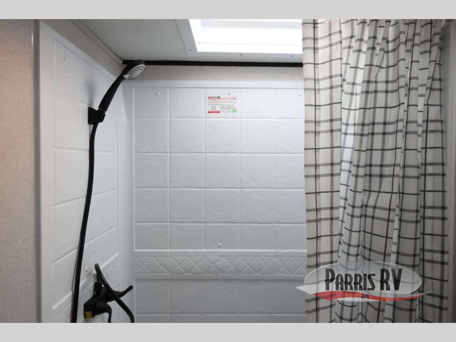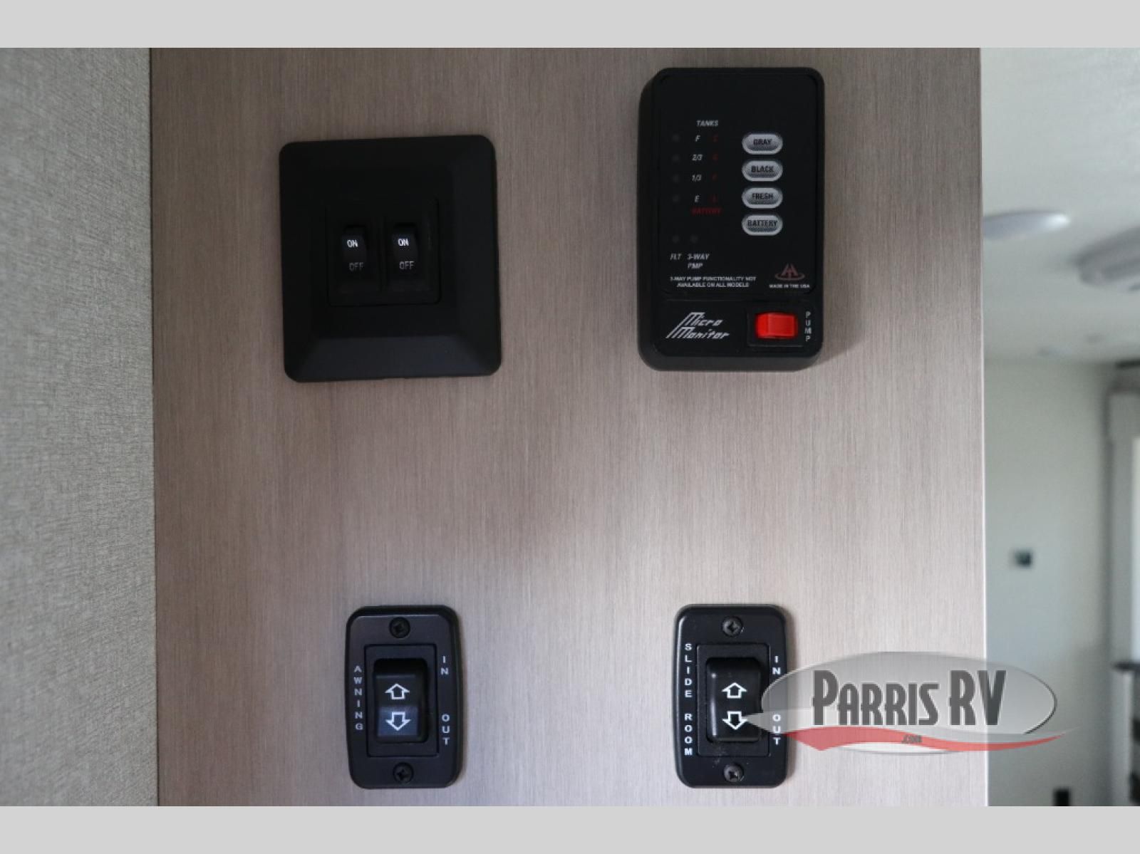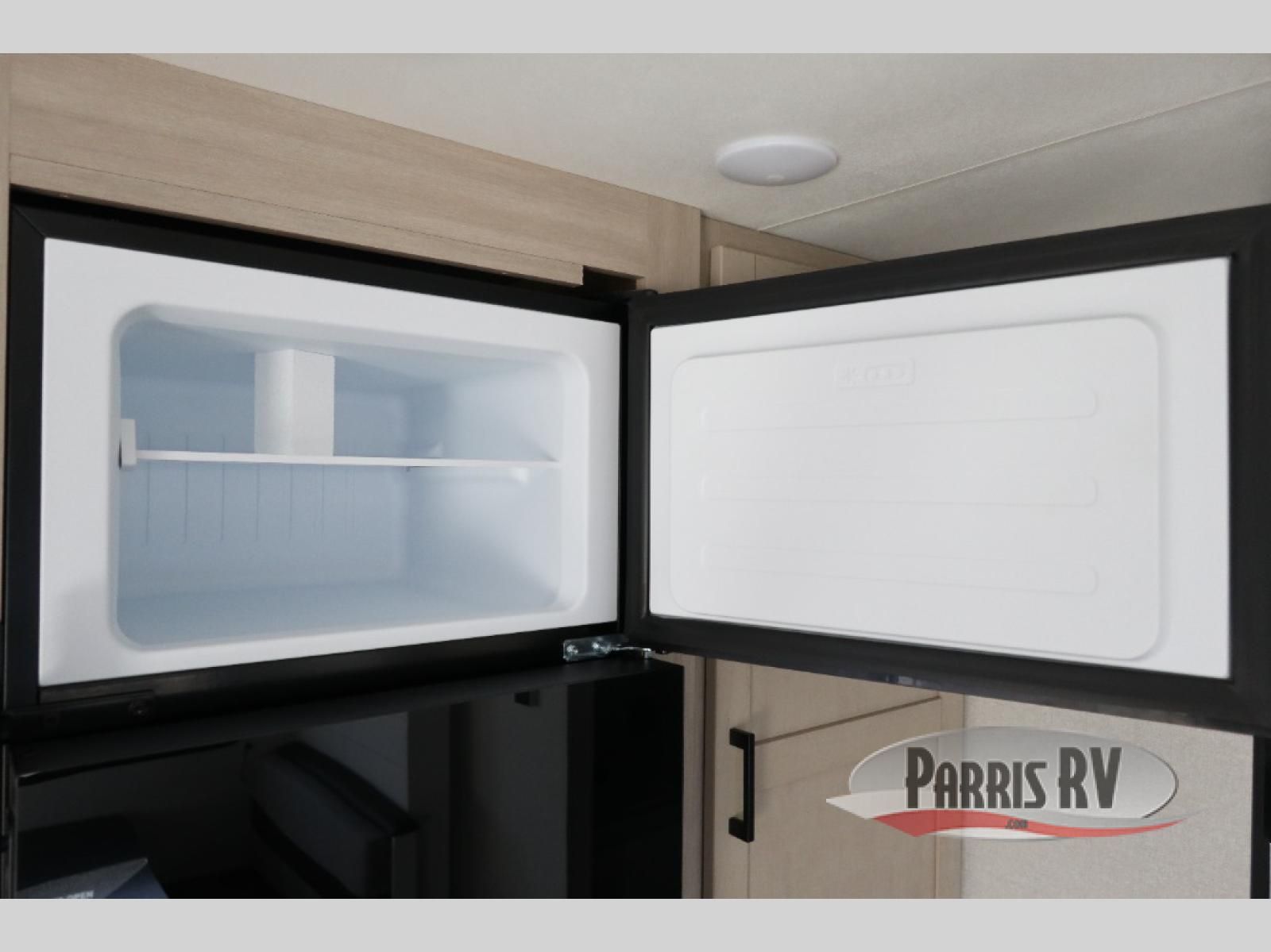 This travel trailer with double-size bunks is spacious and cozy! Once you've unloaded the exterior storage, your crew can put out the 16' power awning with LED lights, then start lunch on the outside kitchen. If the weather isn't cooperating, there is a three-burner cooktop and microwave oven inside, plus comfortable seating on the jack-knife sofa and booth dinette. You're sure to appreciate the front private bedroom with an RV queen bed, dual wardrobes, plus an overhead shelf for books, and the rear corner full bath will let everyone freshen up each day!
