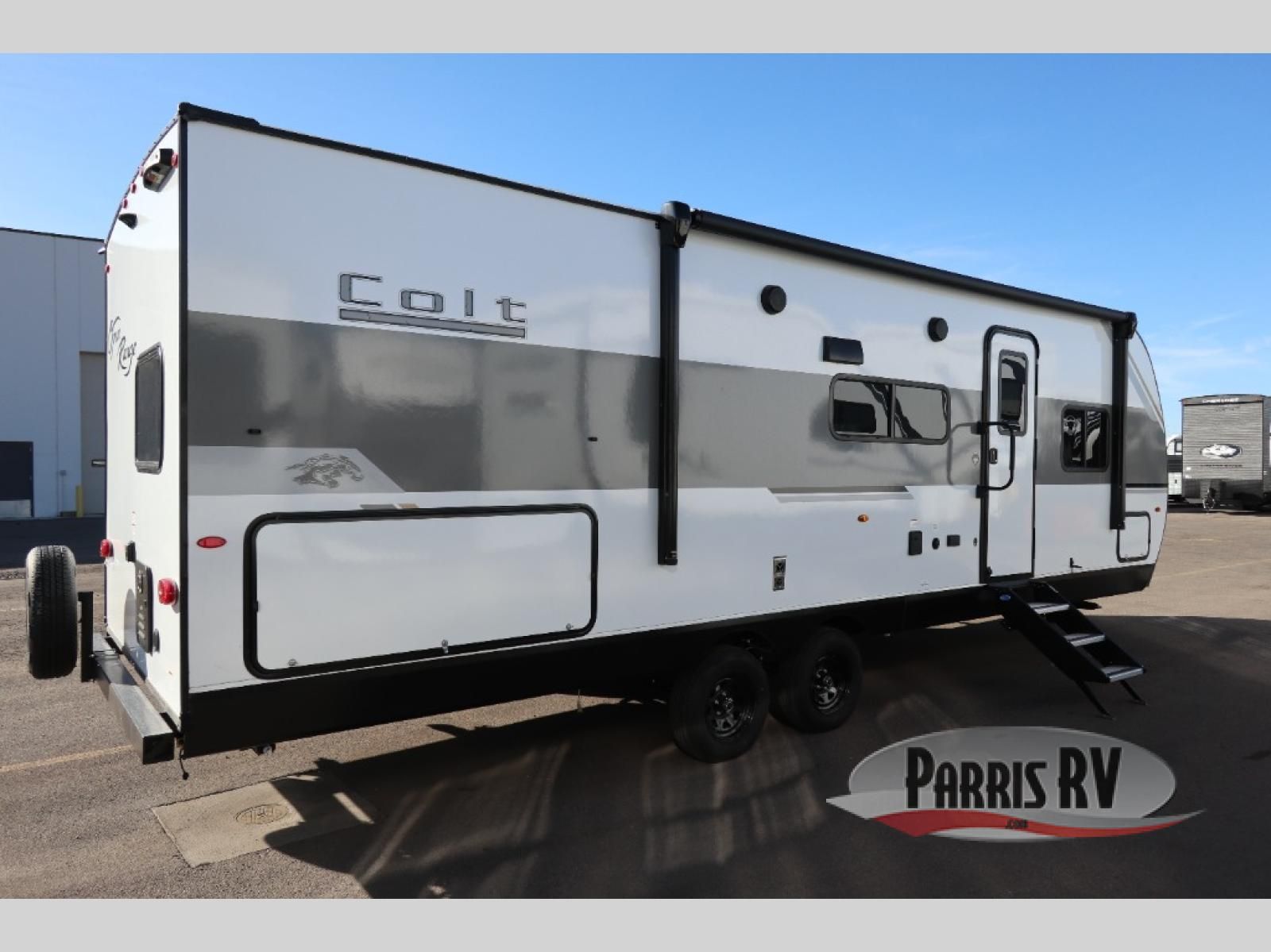 With any Colt travel trailer by Open Range RV, you can be sure you're getting a budget-friendly unit designed to fit your lifestyle! Each one is built to last with a PVC roofing membrane and built-in A-frame, plus there are nitrogen-filled radial tires and self-adjusting electric brakes for easy towing. You will appreciate the utilities that include 30-amp service, an A/C unit, and an on-demand tankless water heater. A few interior comforts include vinyl flooring throughout, solid hardwood cabinet doors, and residential grade kitchen countertops to make your space feel more like home. There are additional features available, depending on the edition you choose, along with available options to further customize your Colt travel trailer!