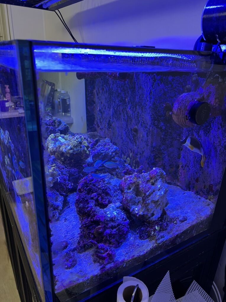 Innovative Marine 100 INT complete setup (ABS stand, sump, tubing, aquarium, sump pump) seams look fantastic and no problems. bought brand new, coming up on 2 yrs old in February. live rock included (4+ yrs old)- $1900 *please note this is about $4100 after taxes and shopping when brand new. If you purchase the aquarium, we can negotiate if interested in other items.