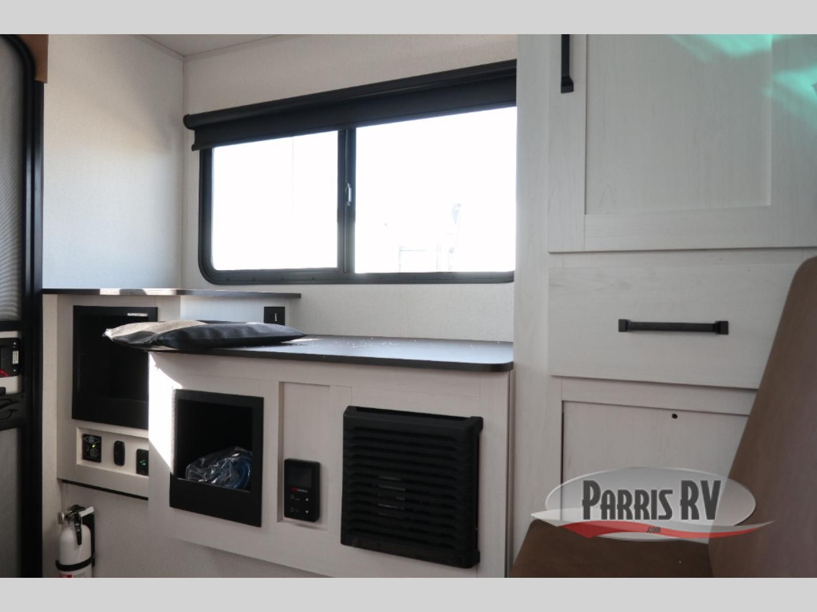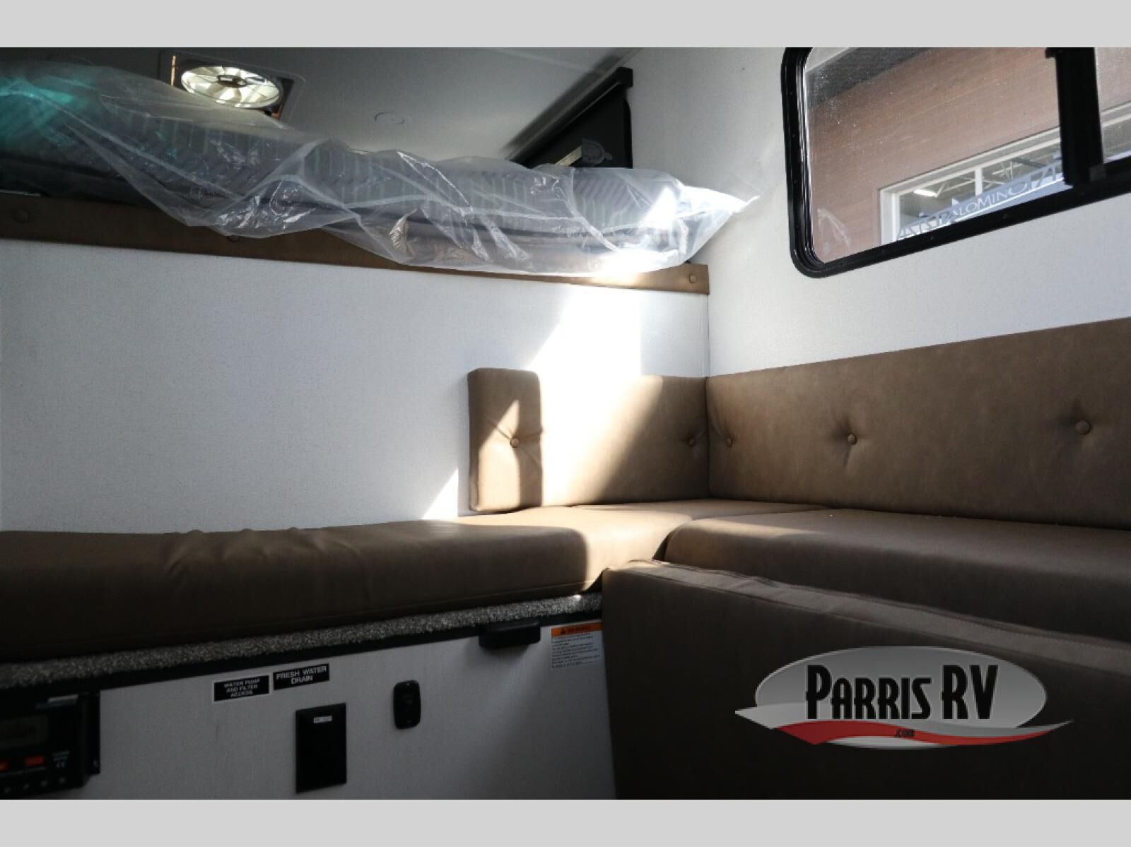 This Overland Vehicle Equipped is perfect for all your outdoor adventures! Enjoy a good night's rest on the front queen bed with a 5" mattress. A Maxx air vent keeps the air circulating and an optional A/C can be added for more comfort. The U-shaped dinette is great for enjoying meals and even has a storage area for a toilet, and you can add the cooler option to keep food fresh.