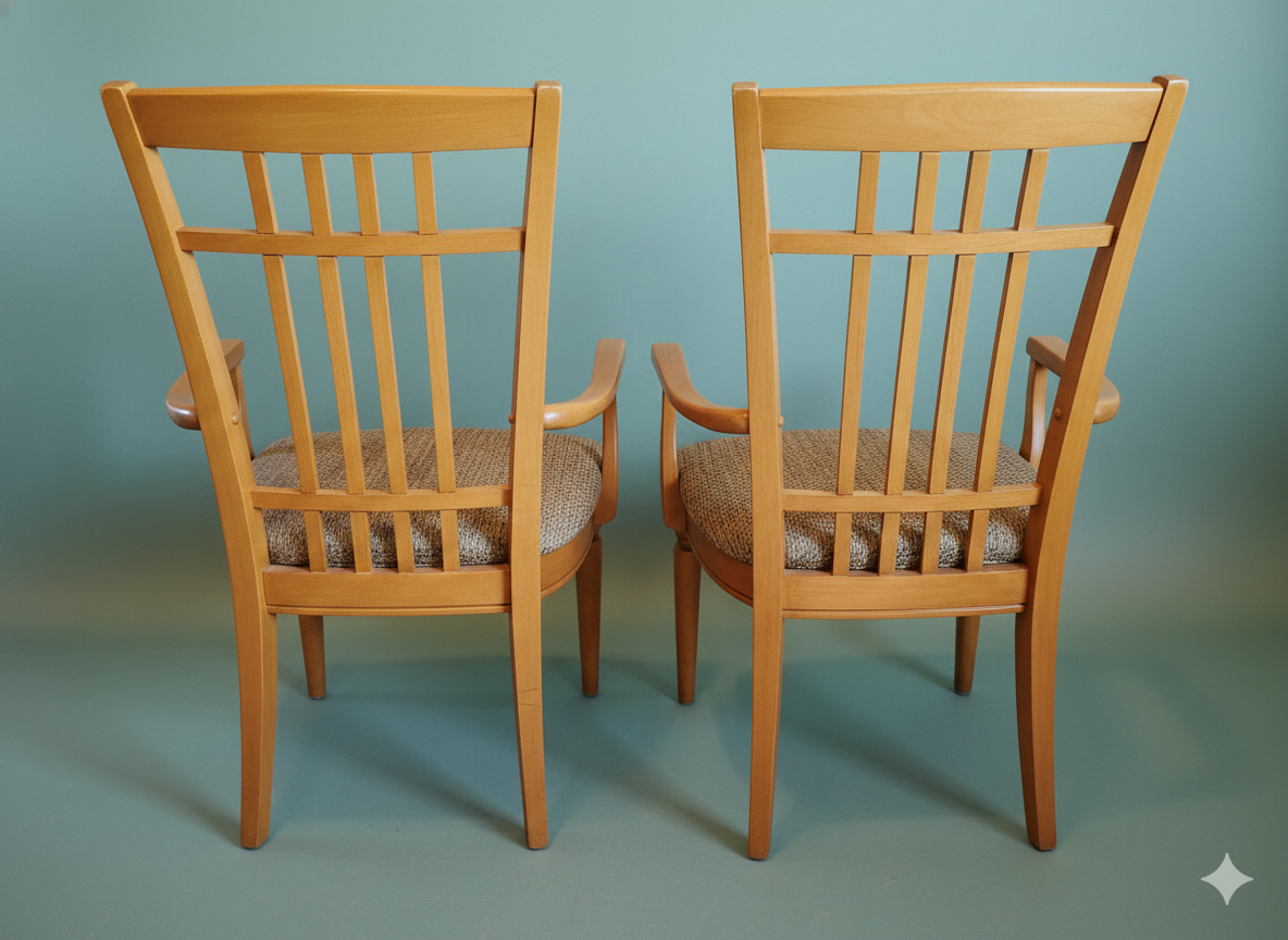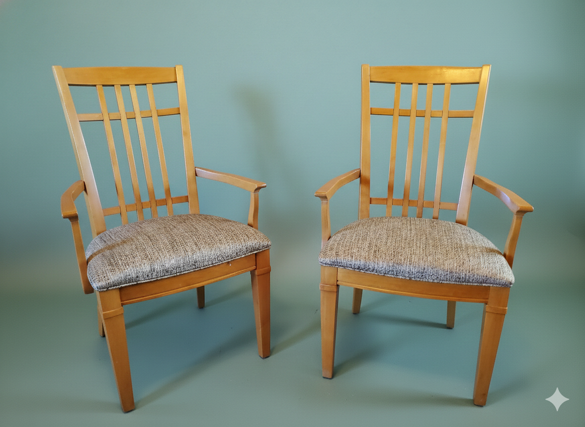 These are beautiful and sturdy solid wood armchairs, ideal for use as an end dining chair, a desk chair, or a standalone accent piece in a living room or entry.
