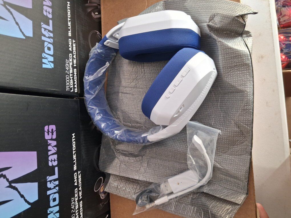 The Wolflaws TA3000 gaming headset connects via a 2.4GHz USB dongle for PC/PS4/PS5, Bluetooth for mobile/Mac, or a 3.5mm wired cable for Xbox or other auxiliary devices.