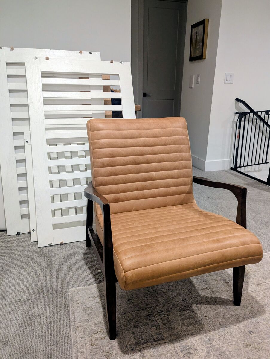 VenmoBeautiful real leather lounge chair. Really comfortable and looks brand new. No dings and in excellent condition. We just moved and don't need it in our office anymore.