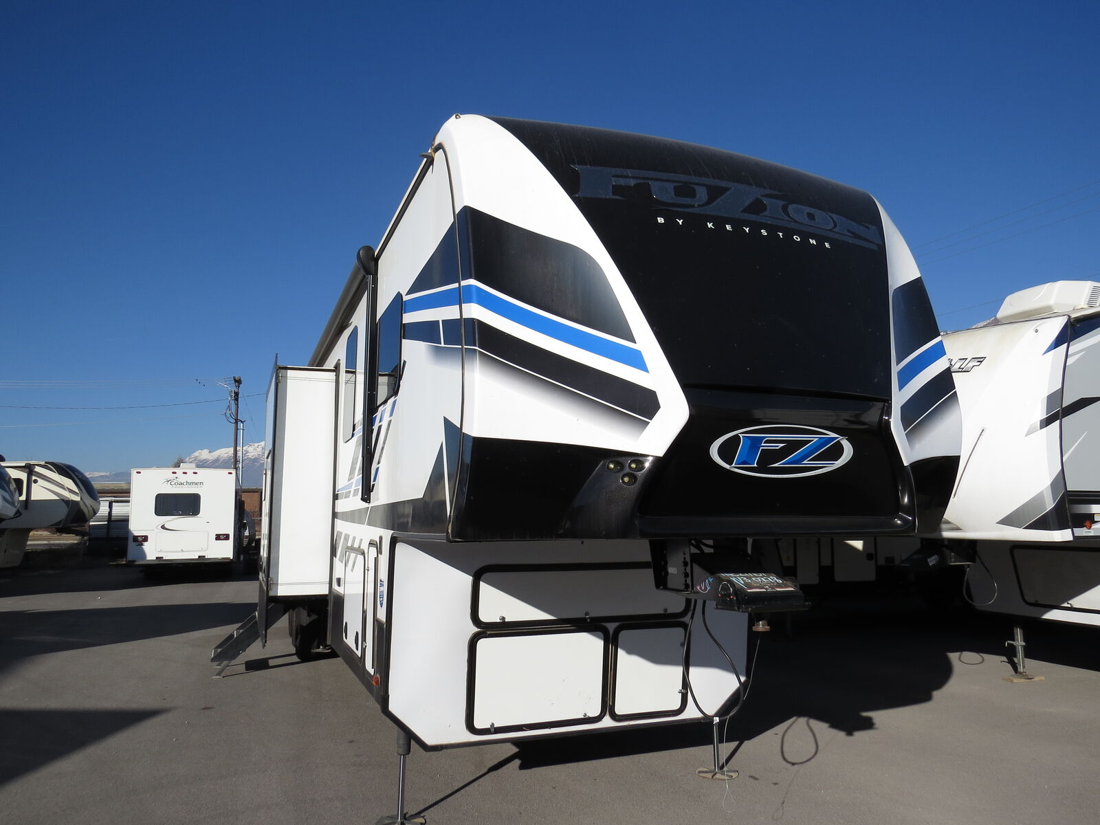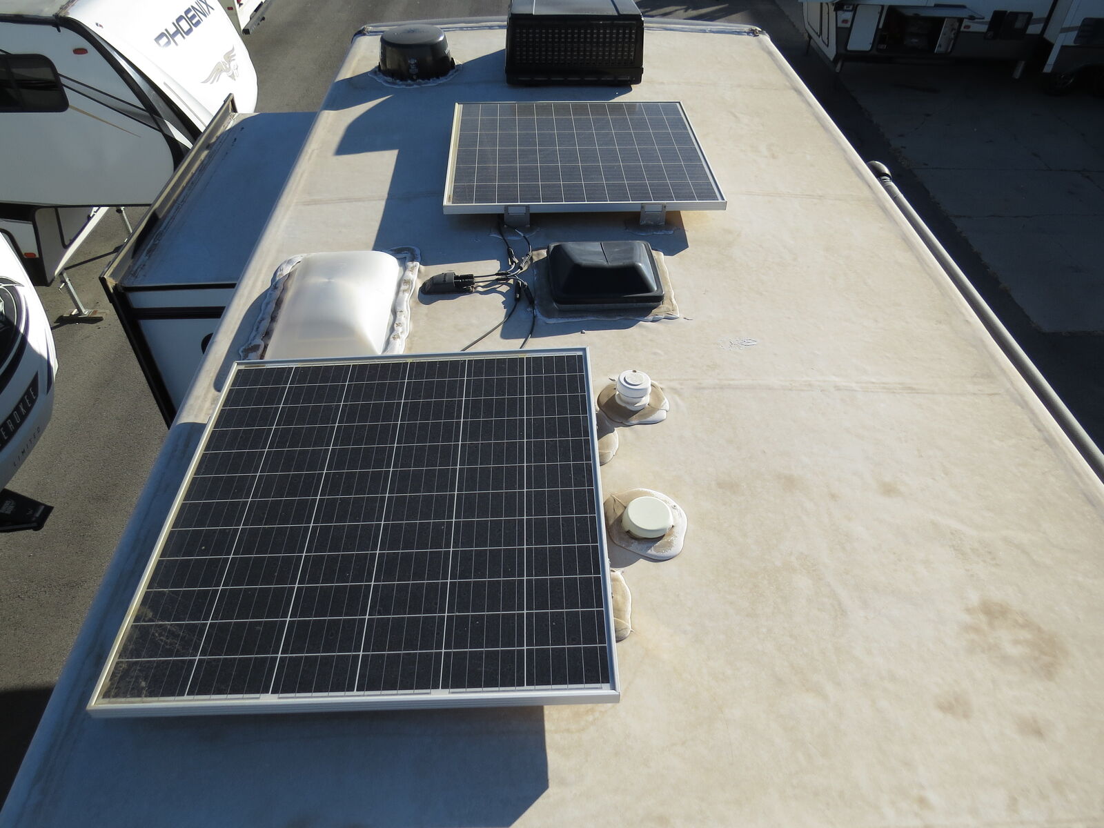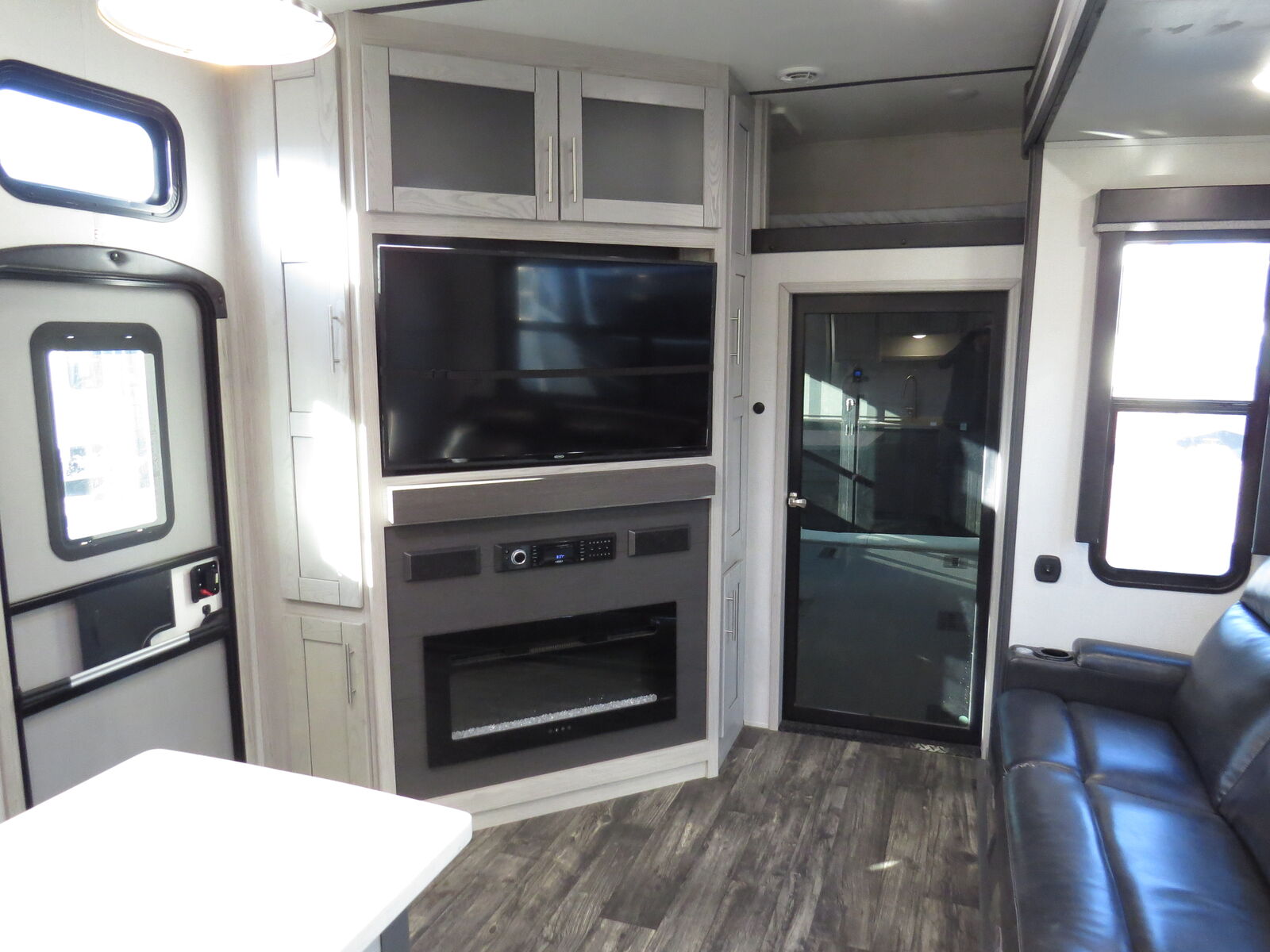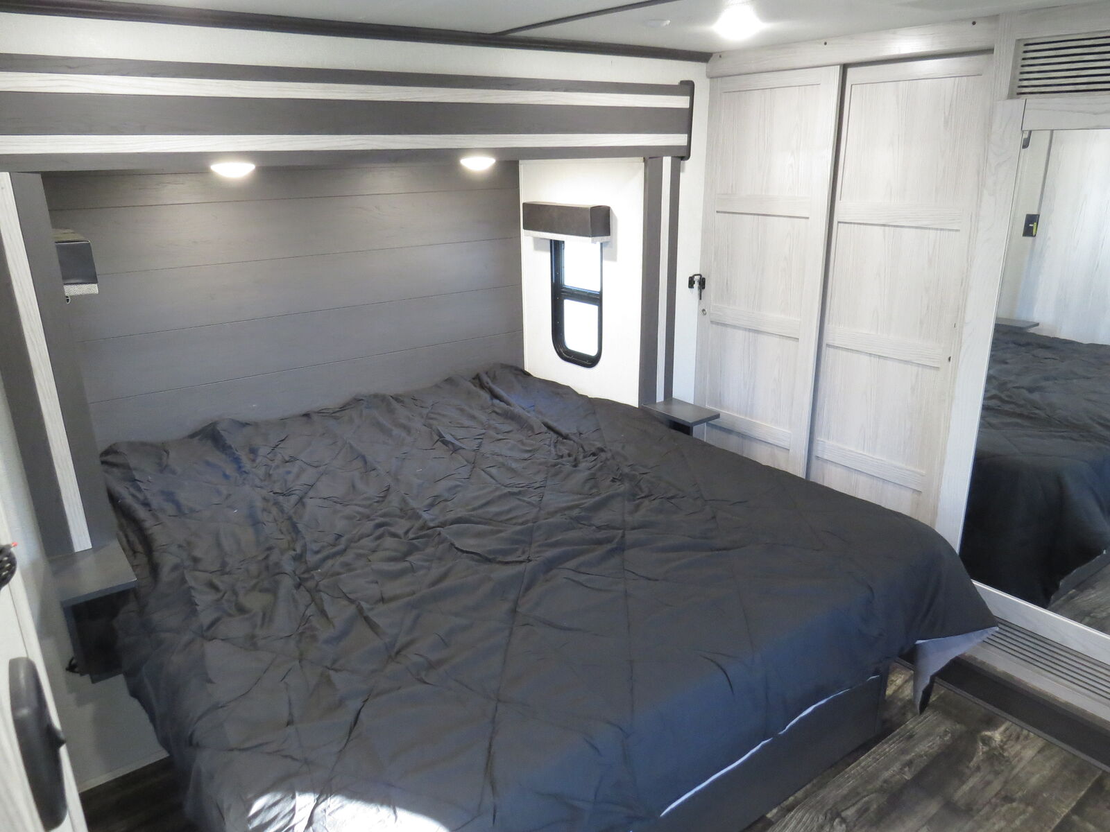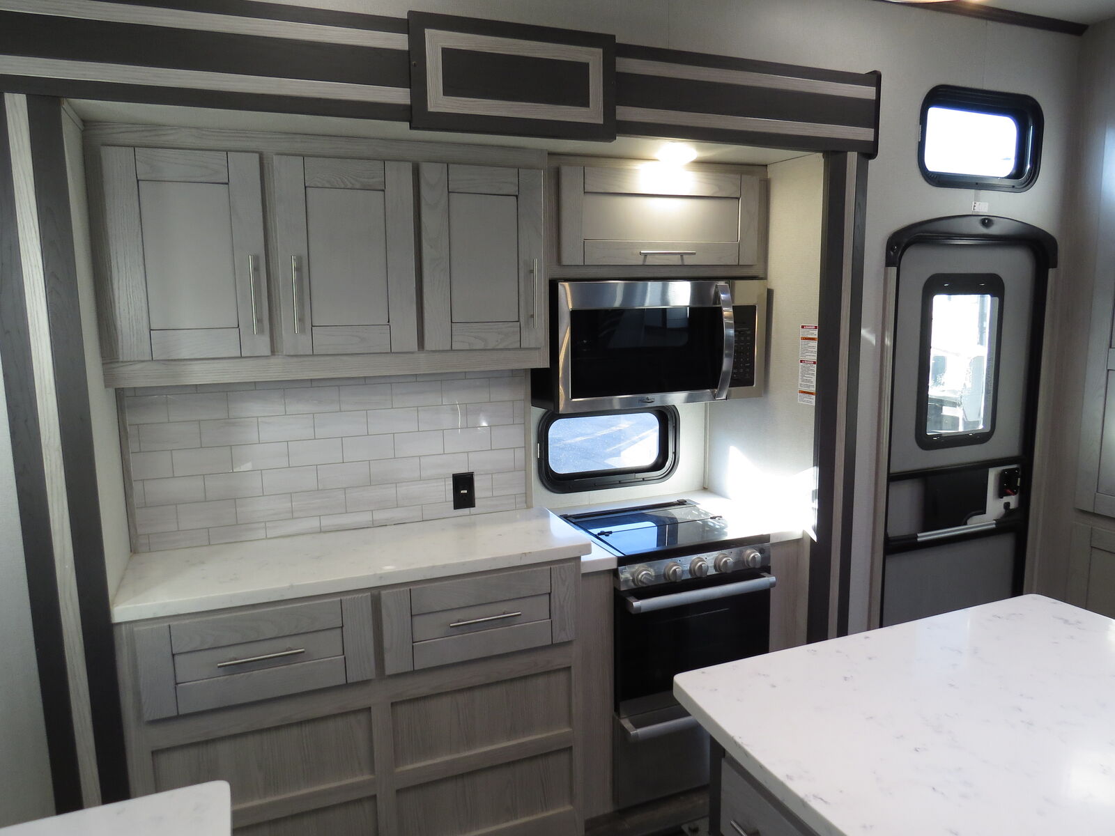 14' 6" Separate Garage!, 3 slides, SOLAR!, Generator 5500 Watt, Fuel station, Big Couch & Fridge SLIDE! Big Couch Slide, Lots of storage, Rear double electric beds (Bottom bed makes into Booth Dinette), Big island with 4 Swing Stools, Kitchen Slide, Front KING Bed Slide, Double Electric patio awnings, Fiberglass exterior, (3) A/C units and Heat.