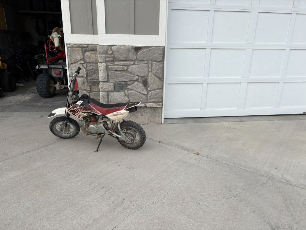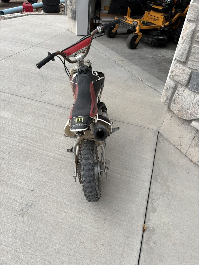 This is a 2004 Honda CRF 50 frame with a Honda CRF 70 motor placed in it. It has an aftermarket rear suspension and bar risers in the front with larger bars. The exhaust baffle was removed by previous owner. Asking $950 or willing to trade for a larger bike as my kids have grown up.