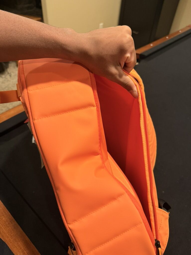 VenmoSelling an orange DB (Douchebags) backpack, 21-liter capacity, in good condition. No rips or tears. All zippers work great. Features a padded laptop pocket and a top compartment pocket perfect for chargers, phone, and small accessories. Clean, well-kept, and plenty of storage for school, gym, travel, or everyday use. Only used it for 1 trip