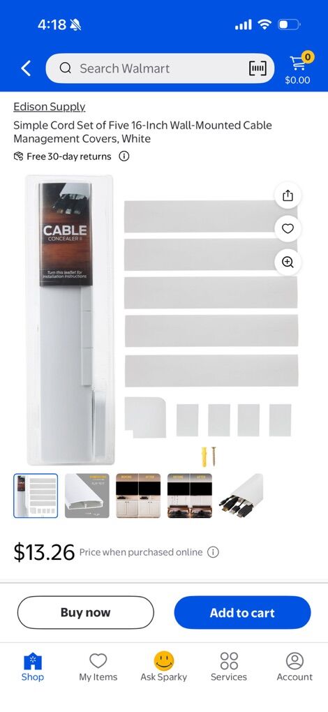 I have a new SimpleCord Cord Concealer II kit for hiding cords and cables on a wall. It is new but the package has been opened. It’s white. The last picture shows that it sells at Walmart for $13.26 plus tax. I’m asking $6. See my other ads for jewelry, artwork, home decor and more.