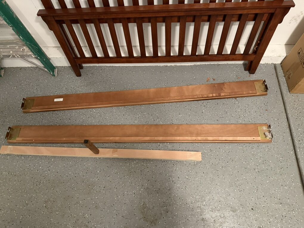 Up for sale is a nice solid wood, queen size bed frame. It does need a foundation or box spring to put under the mattress.