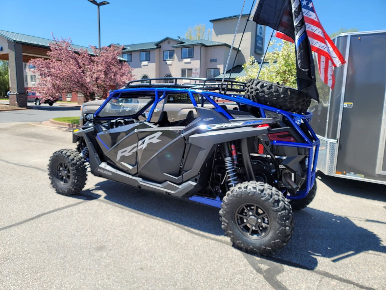 2022 Polaris rzr pro 1000 xp ultimate, mileage 1870.7 this machine is street legal and has lots of upgrades, has a custom cage with a tire rack with a spare tire on it that lifts out of the way with shocks and a luggage rack on top and 2"offsets to make the car wider.and with M1evil 30X10R15 tires with upgraded wheels also has a winch in the front. Also it has ride command Stereo also has dynamic suspension plus I just put brand new shock therapy springs on it in the fall haven't even taken it out to try new springs. Dosen't have many miles on it because I don't have the time to use it. The first pic is what the machine looks like now with the new wheels. This car is a beautiful and an amazing machine!!!