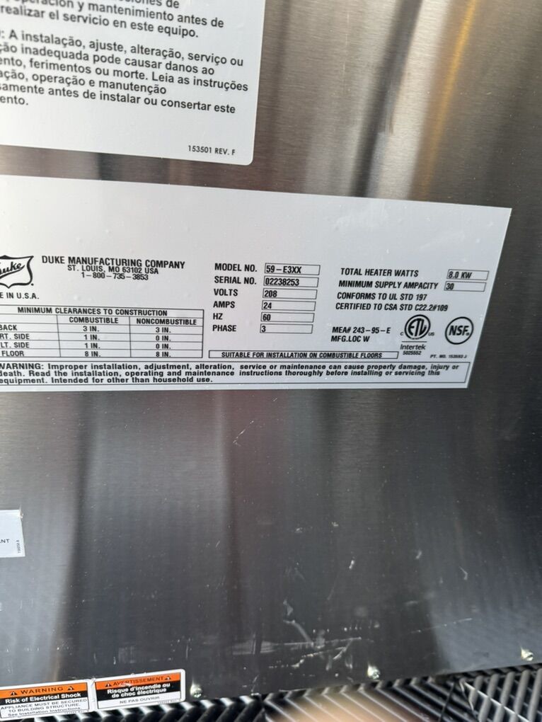VenmoI have a brand new, never used Duke 5/9 E3XX Electric Half-Size counter top Convection Oven. Serial Number 02238253. 30” H x 30” W x 25 1/4” D. 208 V, 24 amp, 20 Hz 3 phase. It does not come with a cord. Any electrical store can provide a cord. Retails Brand NEW for almost 5k. Now trades or low ball offers. CASH ONLY!!!!