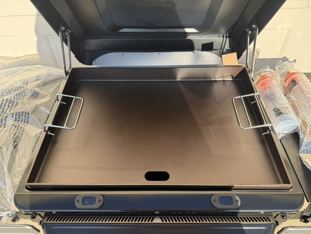 Multi-zone cooking surface • Heavy duty flat top for smash burgers, breakfast, stir fry, etc • Even heat distribution • Wind-resistant burner design • Large cooking surface