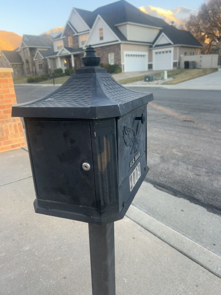 VenmoMetal Mailbox with Post – $30 Black decorative metal mailbox with matching post included. About 20 years old and still sturdy. Shows normal weather wear. The lock/key does not work, so it opens from the front only (no locking). Would be great as a basic replacement mailbox or for someone willing to replace the lock. Buyer will need to remove/pick up. Message if interested!
