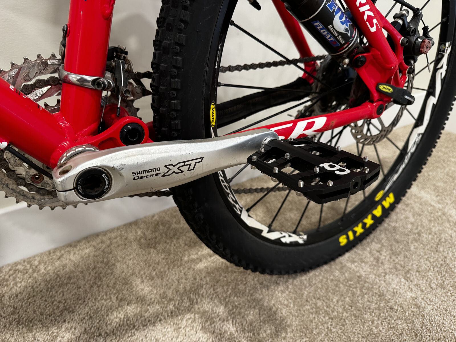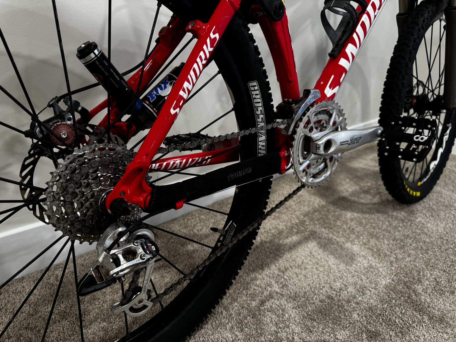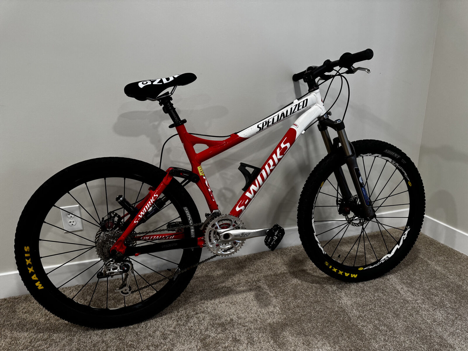 ApplePayThis is a 2004 Specialized S-Works Epic- 26. Amazing condition. Front fork and 'brain' rear shock are in great shape and fuction well. Disc brakes work perfectly. New grips, metal pedals, and new seat. Tires are in good condition and hold air well. Frame is in great shape and has some additional re-enforcement at the bottom of the front tube. Would fit riders around 5' 3 to 5' 10.