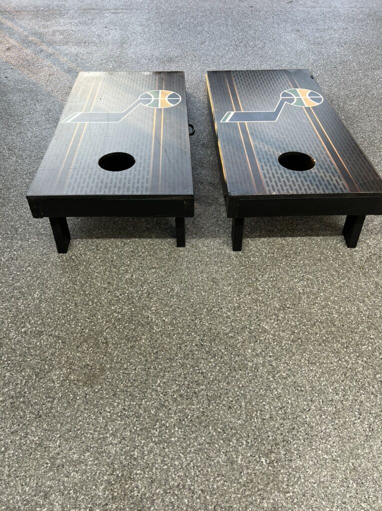 VenmoHeavy duty custom built cornhole set with 8 bags. The legs fold for tight storage, and has a spot inside to place the bags.