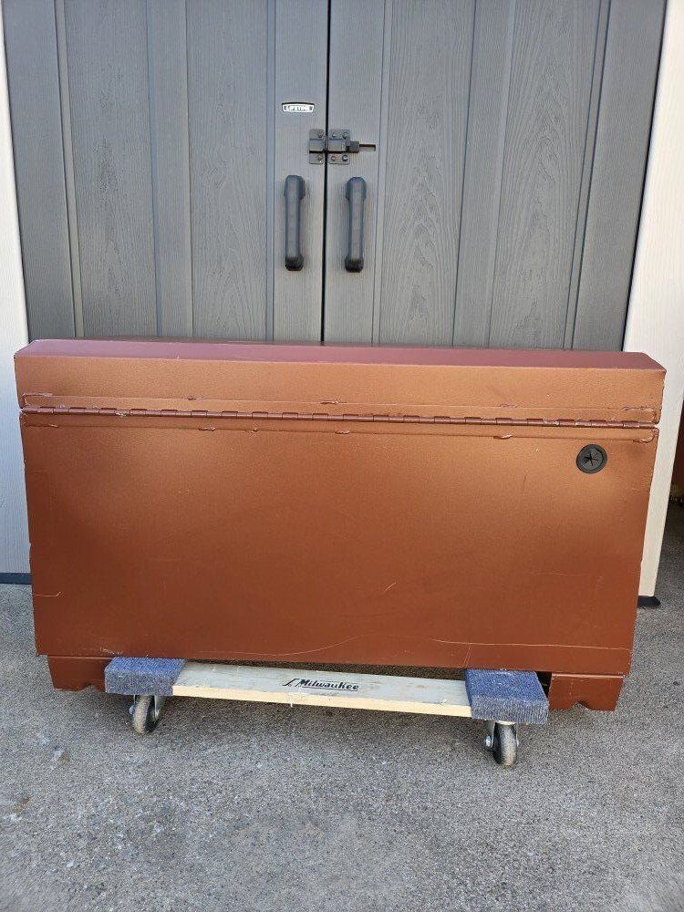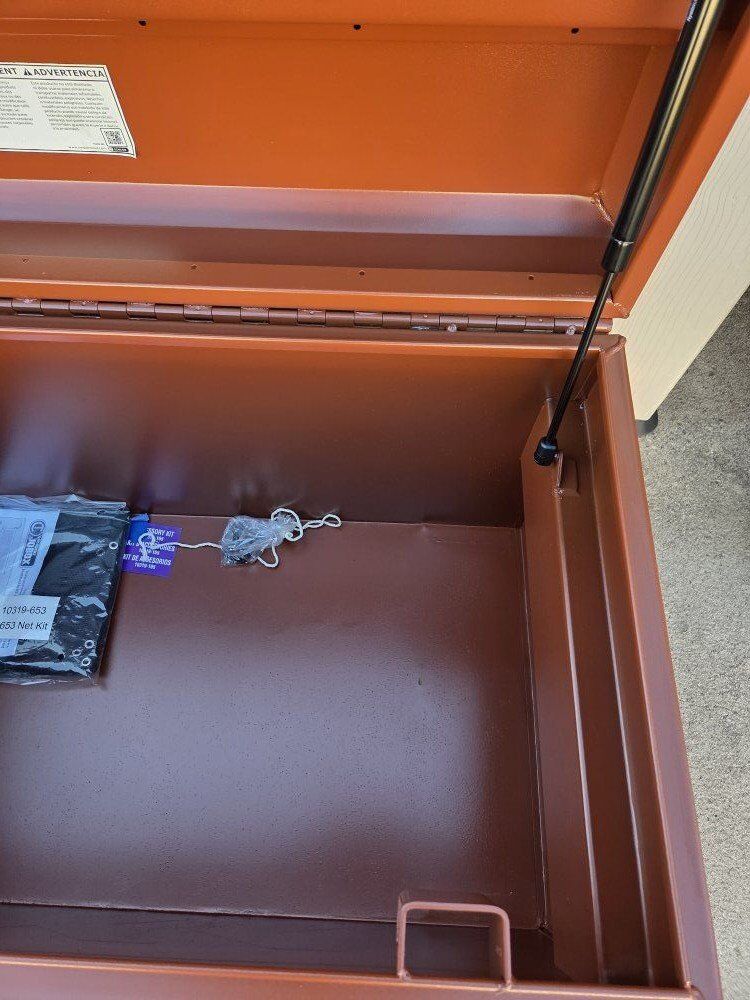 Upgraded Site-Vault Security system to use multiple padlocks 3-point locking system shielded by steel plates Heavier gauge steel reinforcement for superior strength Lid bolsters resist bending from cargo placed on top of the box and from attempted break-ins Textured powder paint resists corrosion, chips and abrasion Commercial gas springs for safer lid operation to open and close Beveled edge lid eliminates sharp top corners of lids 4-way access skid bolsters Compatible with casters for easy transportation