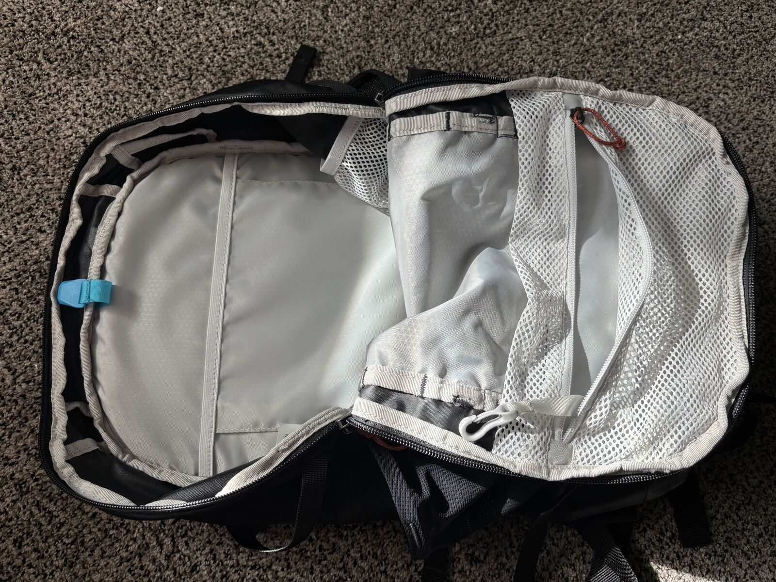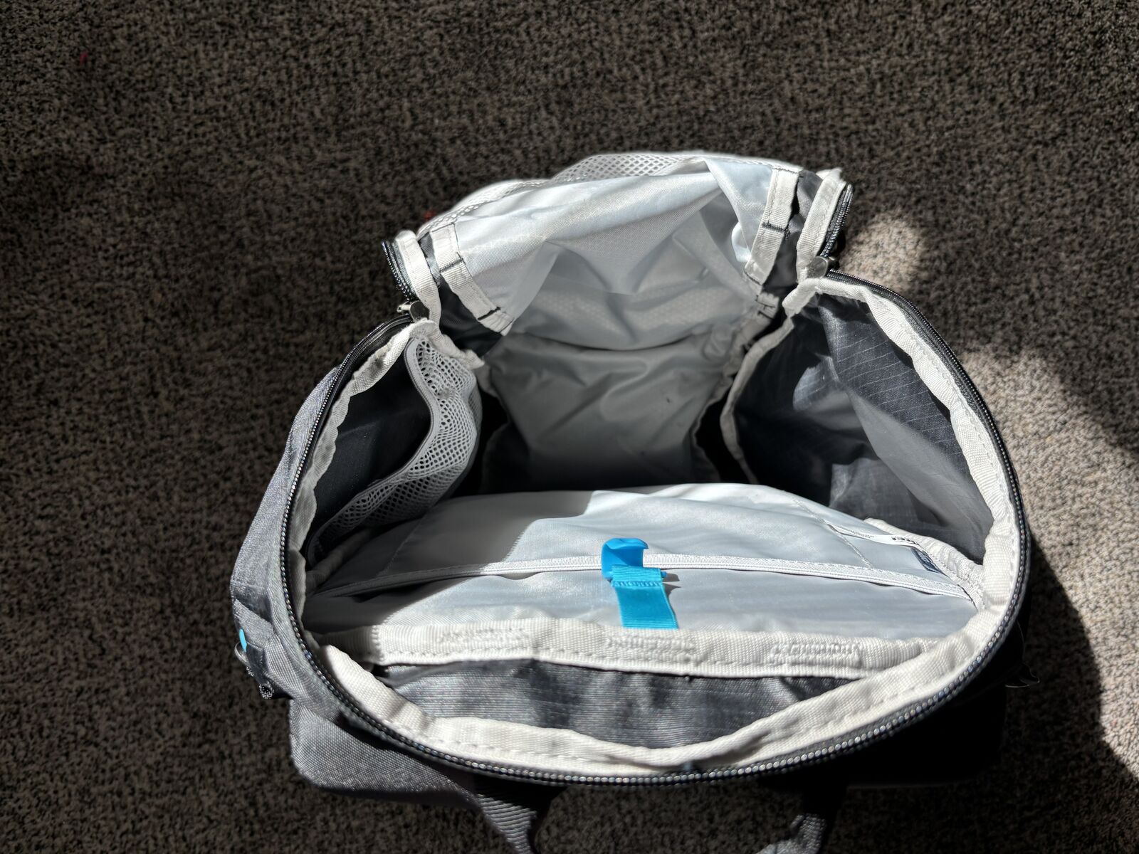 VenmoREI discontinued this women-specific version of the Trail 25 Pack. The contoured foam in the harness provides a women-specific fit. The pack includes a rain cover which stows in its own zip pocket. This pack includes special aluminum fasteners on the back that hold trekking-pole tips down low and pole shafts up high. The unisex version of this pack does not have that hardware. The pack is in good repair without any damage, wear, or issues.