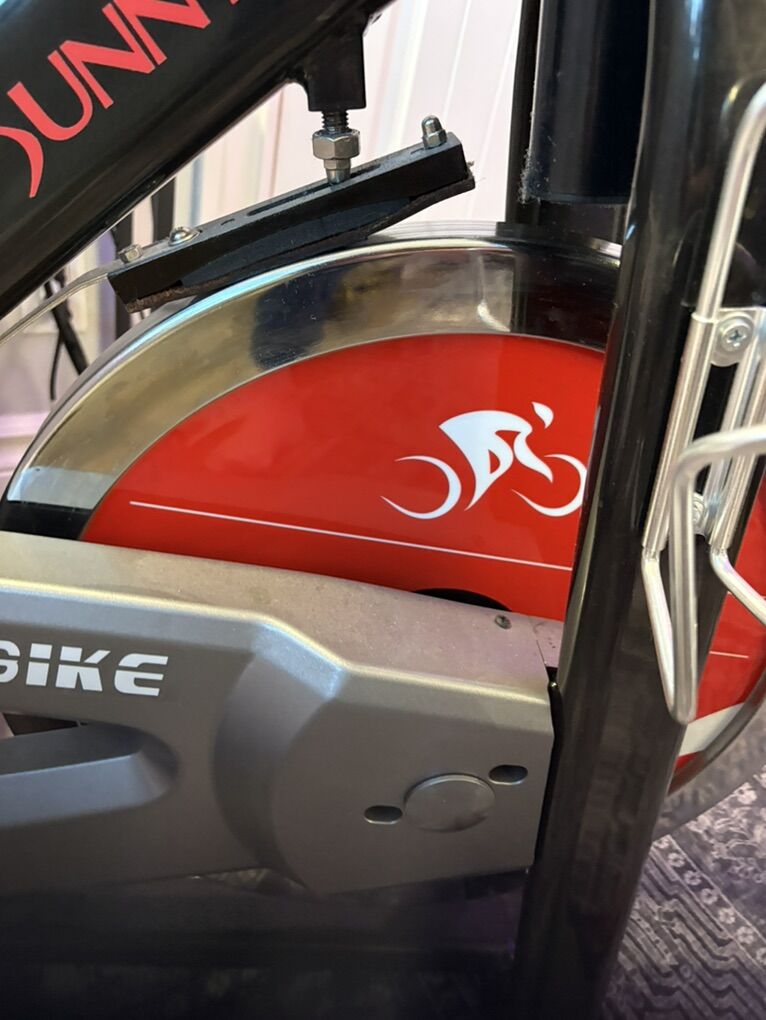 This bike is a peleton dupe used for many rides while following the peleton app. Comes with upgraded nose less seat and upgraded pedals that have both cages and clip ins. 49 lb heavy duty flywheel, quiet operation, Adjustable resistance to add variety to rides. Transportation wheels for easy moving. $65 Please text.
