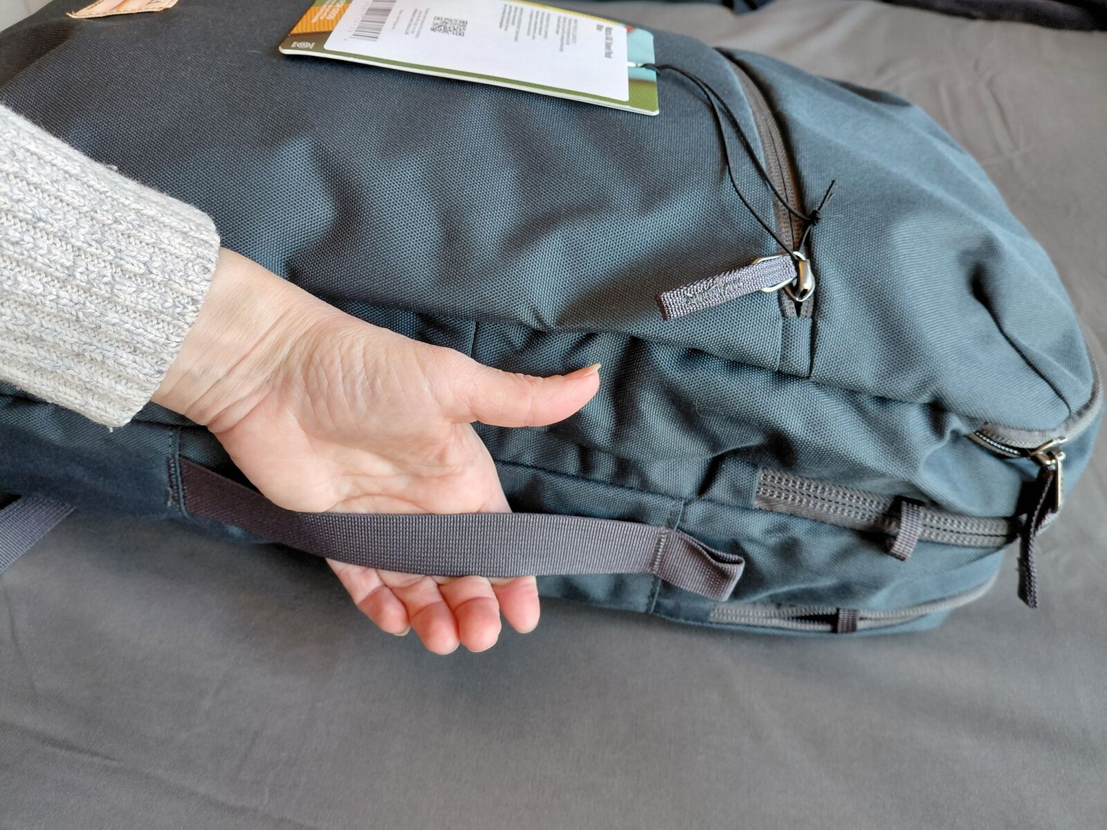 GooglePayBrand New with Tags, perfect condition. This is an extremely hard-to-find pack, especially new and without corporate branding. The color is blue with a hint of green, and the material is a durable canvas-type. More stylish than Cotopaxi's typical packs. The clamshell opening with full zipper on each side keeps everything in its place while having it all easily-accessible. There's a padded laptop pocket, a medium front pocket, and a smaller top pocket. Discontinued, semi-vintage style. I hate to part with this one, but really have too many packs!