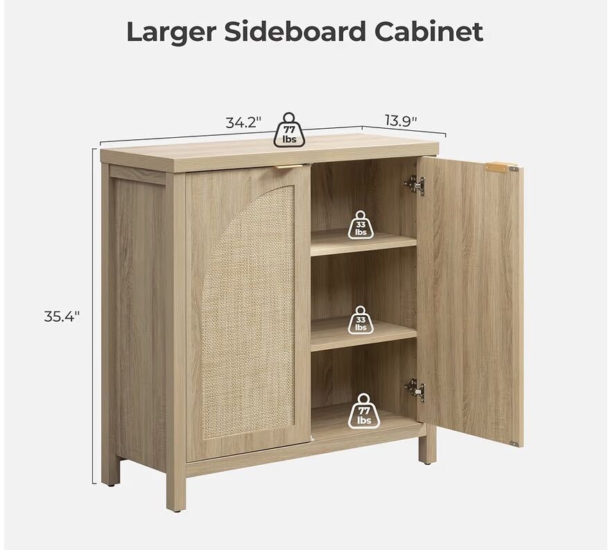 Beautiful mid-century modern rattan sideboard set (2 cabinets) in excellent condition. Features arched doors, adjustable shelving, and tons of storage. Perfect as a buffet, coffee bar, media console, or entryway cabinet. • 68” wide total • Natural rattan + wood finish • Boho / mid-century style • Great storage for kitchen, living room, or dining area • Sturdy and well made