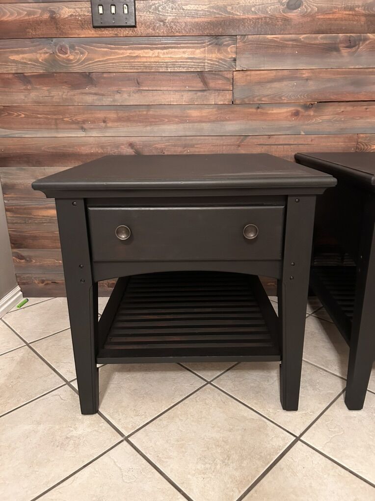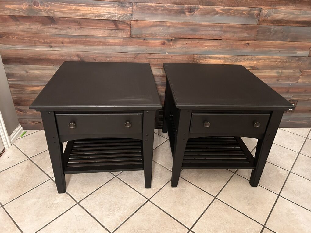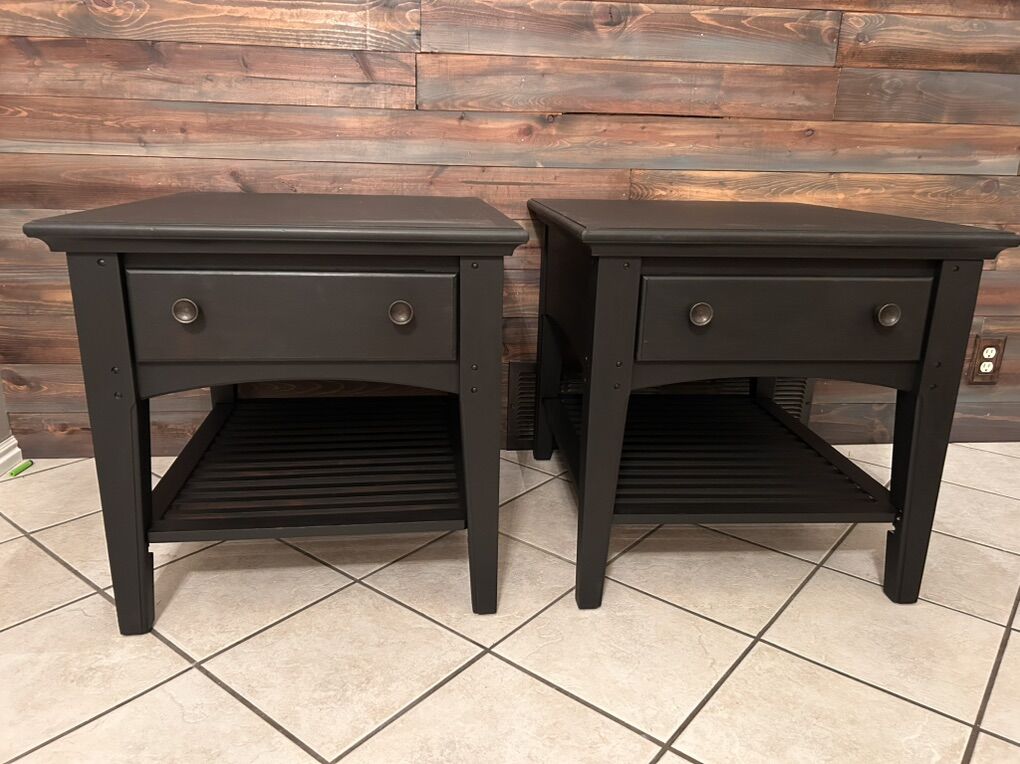 Beautiful matching set of solid nightstands with smooth-gliding drawers. Sturdy, heavy, and built to last.