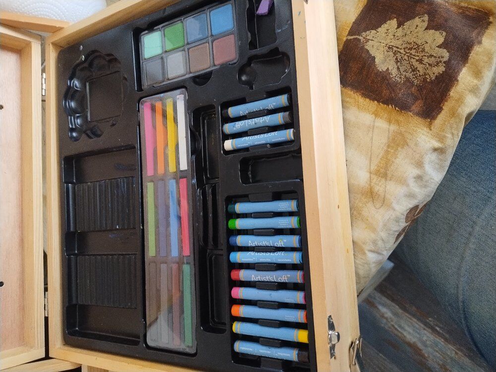 CashAppI have a very lightly used Portable Artist Box/Easel, painting tool, studio, sketch box Easel. Folded is 12" w x 15" t x 4 1/2" d, Opened it can hold app. 19" t x 24" w canvas. It also comes with 8 simply simmons value brush set, 32 Pastel Chalks, 10 artist loft oil paints 12ml tubes, new. If you have any questions, please call or text, text is usually best. 801-558-9676, thanks for looking. No, don't send me a code, don't have time for that crap. $40.00 obo.