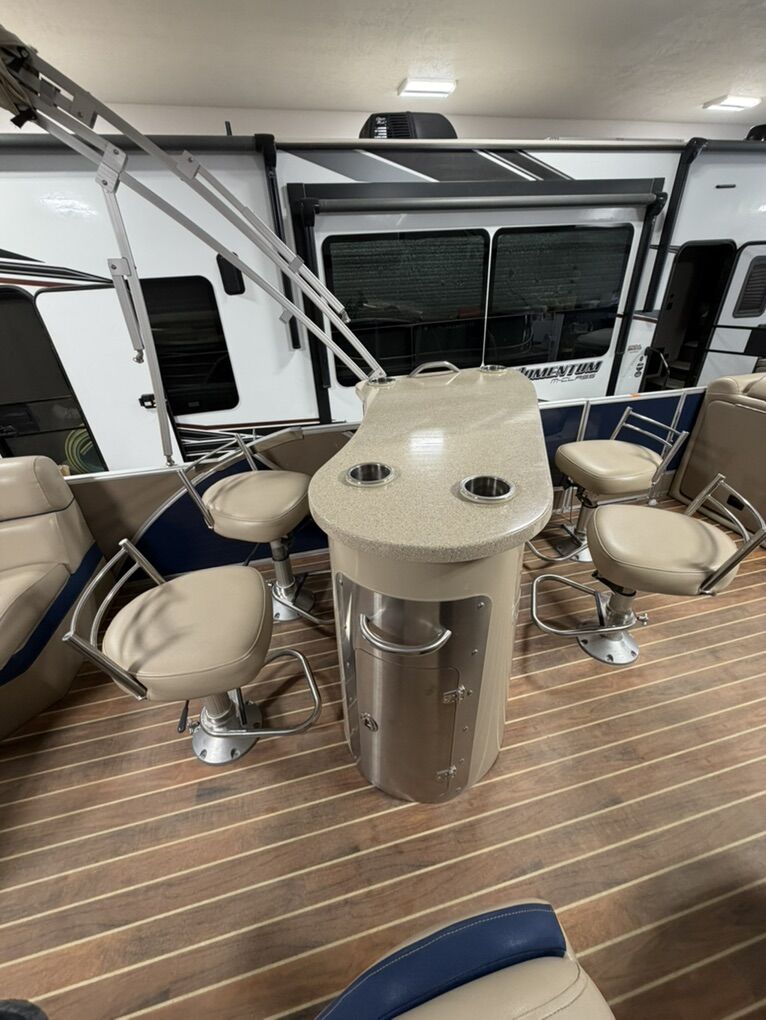 We’re selling our 2016 South Bay 525 E pontoon boat powered by a 2016 Mercury 150 HP Four Stroke outboard, paired with a 2016 LCI Trito trailer. We bought it brand new in Feb 2016 and only selling it to get something bigger with our growing family. This boat is in great condition with low hours of 305. We have never had any issues with this boat and it is always stored in a heated garage in the Fall until we take it out each summer.