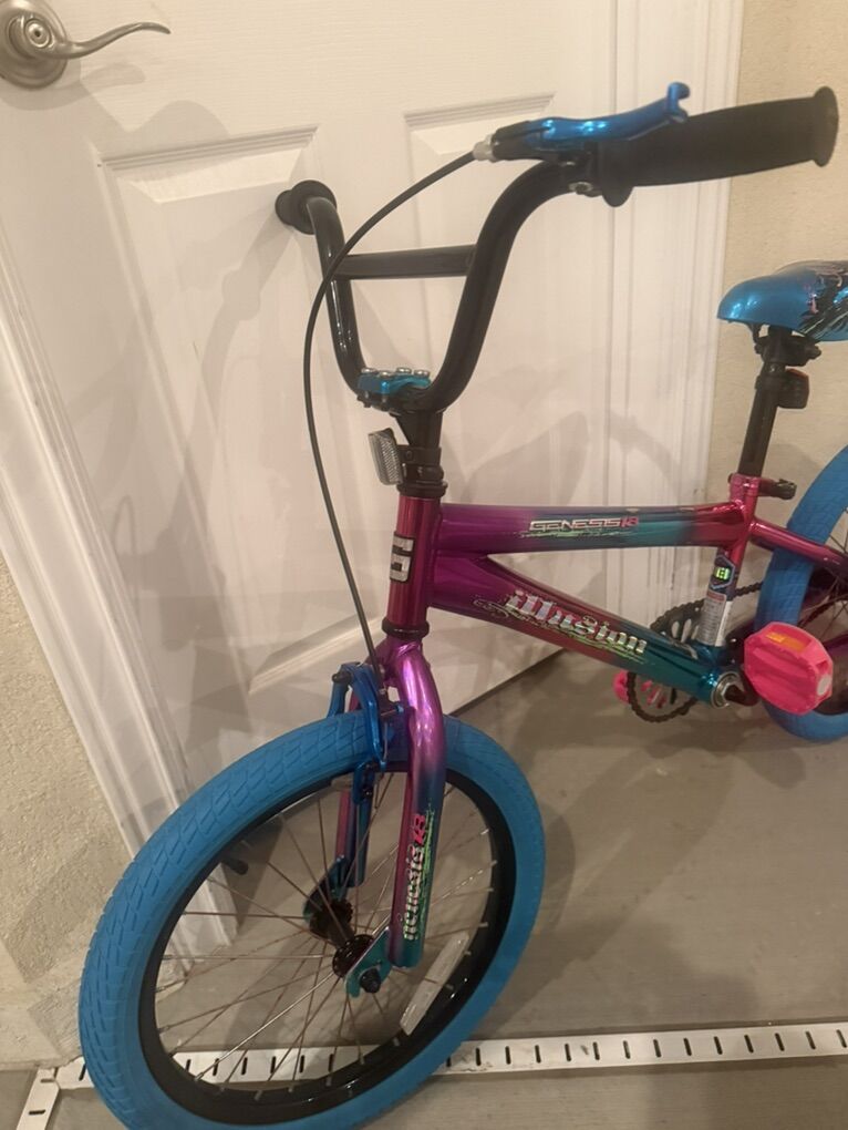 VenmoGenesis 18 inch one speed girls BMX bicycle. This bike has been serviced having all moving and parts cleaned and greased. It has front hand brakes that work great. Rear coaster brakes also work flawlessly. Rims are true with great treads on tires and tubes that hold air. This bike is great, nice clean ready for miles of fun riding!!!!