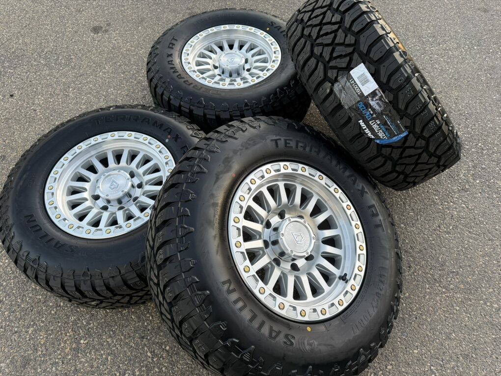 Brand new wheels and tires. Stickers still on everything, never mounted to a truck.