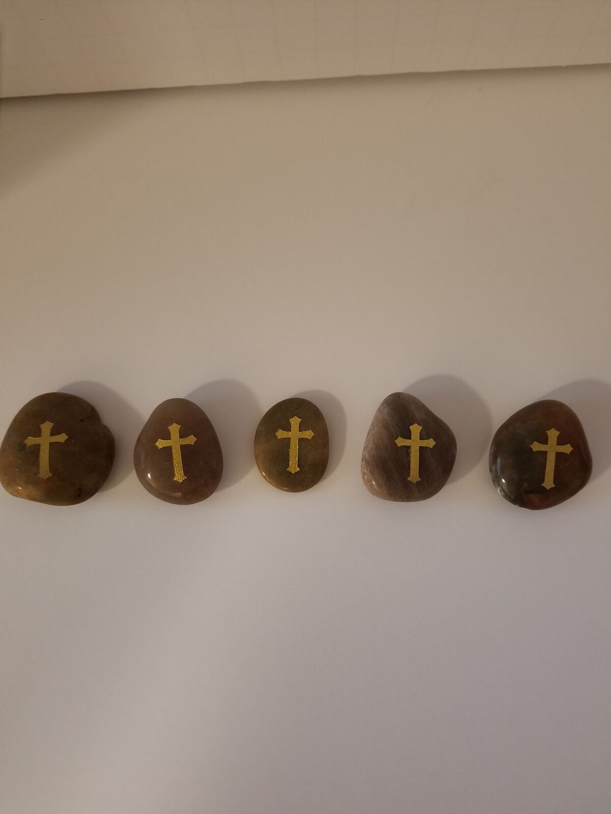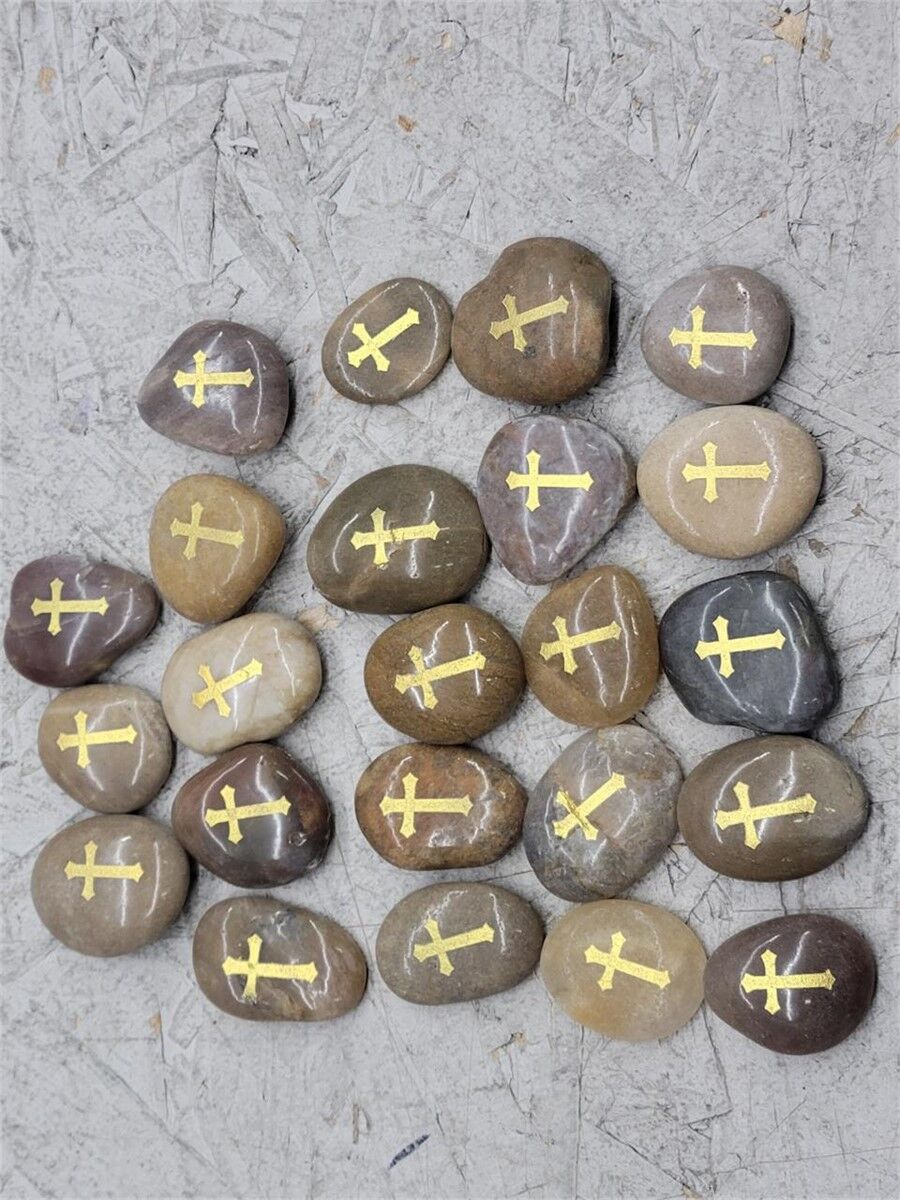 PayPalThese are brand new/mint condition prayer stones! If you need more than a 5-pack let me know, I have 20+ total. Carefully crafted and adorned with gold-colored crosses. The stones vary in shape and size, showcasing natural hues ranging from browns to grays, making each piece unique. Perfect for spiritual use, decoration, or as thoughtful gifts, these prayer stones can serve as a daily reminder of faith and reflection.