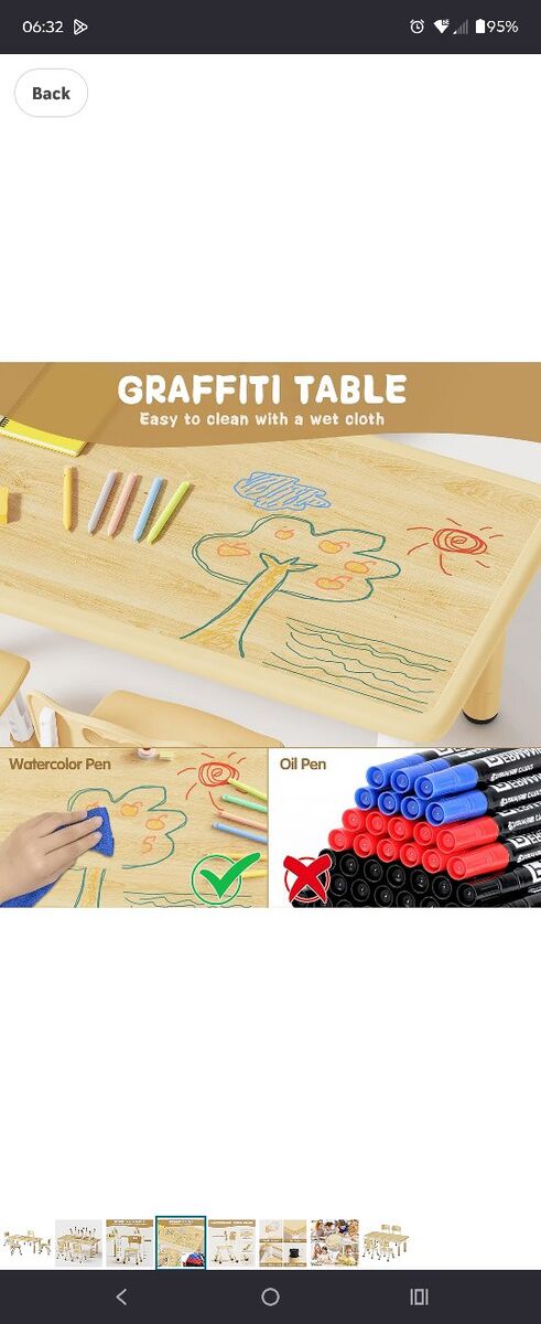 VenmoKids Table and 4 Chairs Set, Height Adjustable Toddler Table and Chair Set, Graffiti Desktop, Non-Slip Legs, Children Multi-Activity Table for Ages 3-10.