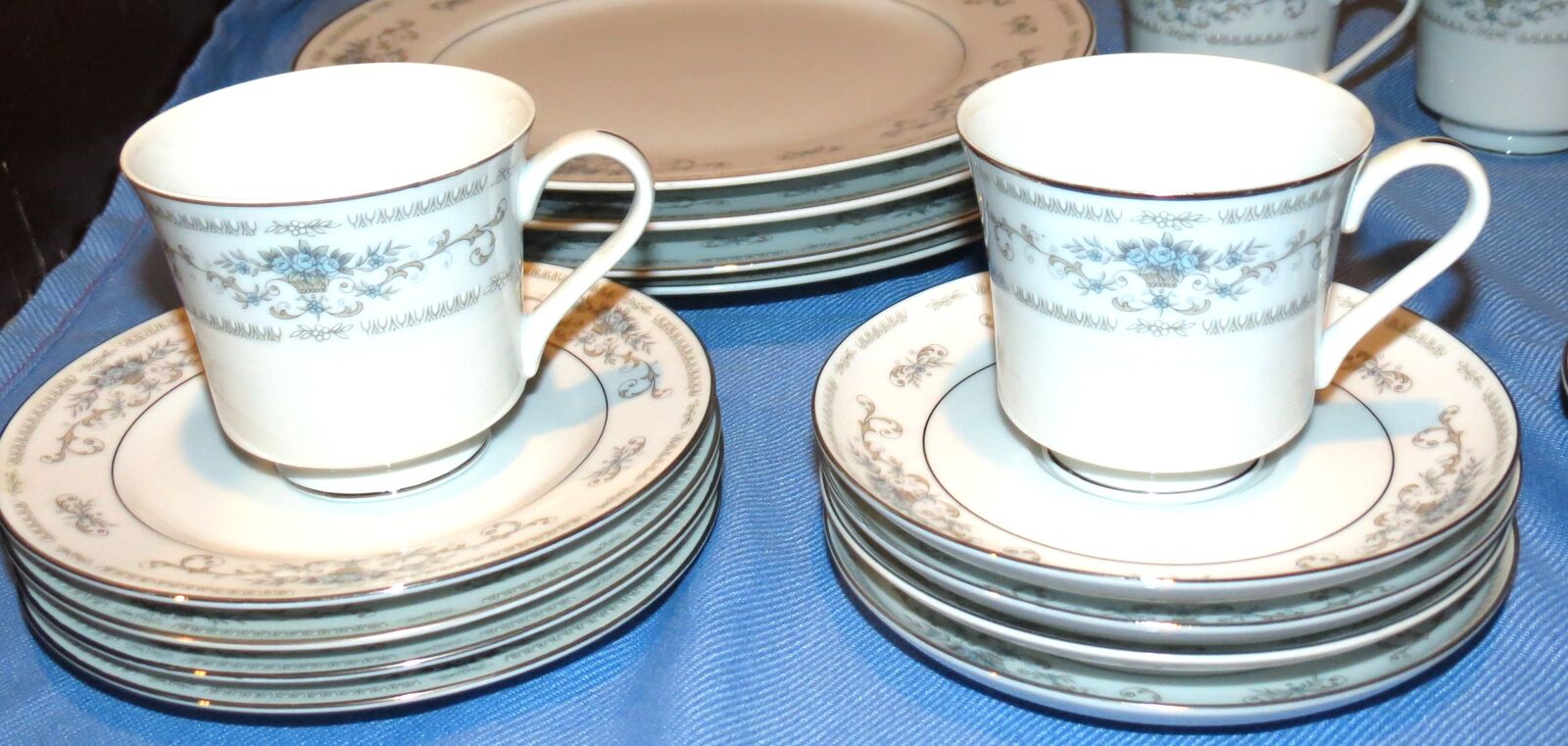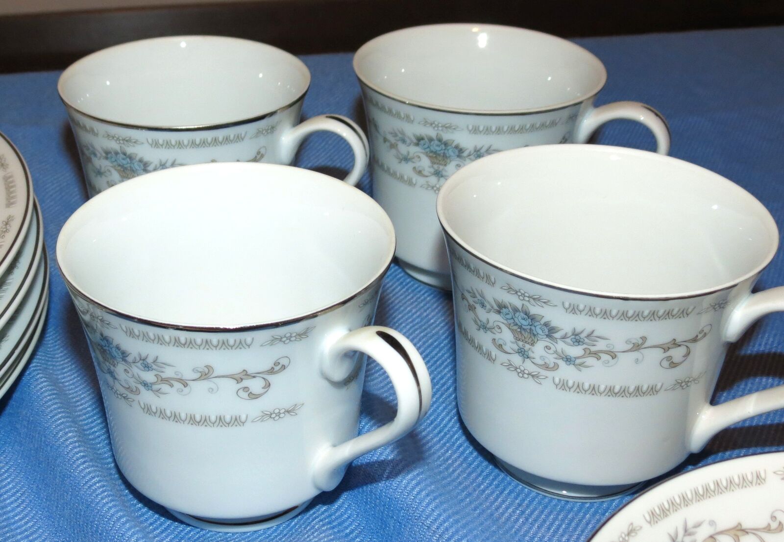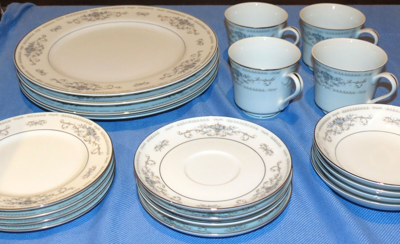 VenmoFine Porcelain China, "Diane" pattern, made in Japan, 1970s. Service for 4! 4 tea cups, 4 cup saucers, 4 dinner plates, 4 bowls, 4 small salad plates! Superb condition, hardly used, if at all.