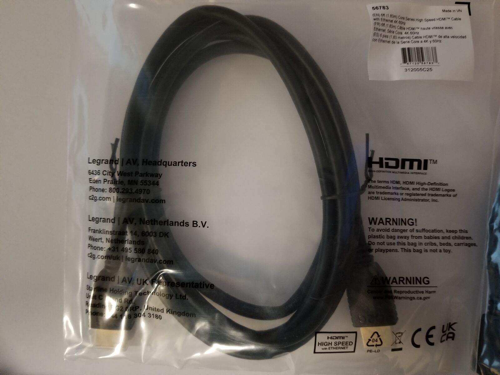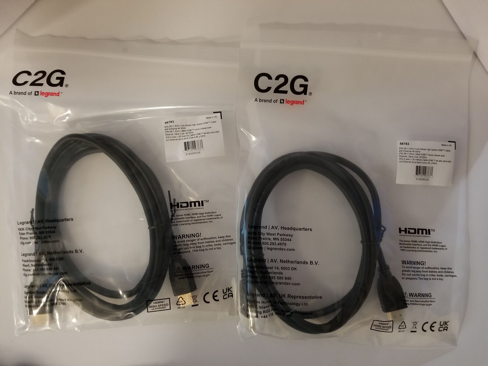 PayPalI have more of these if you need: Brand new set of HDMI cables, never needed and never opened. Supports all HDMI 2.0 features including resolutions up to 4K (4096 x 2160 at 60hz, 4:4:4) Supports HDMI features including 3D video Gold plated connectors Fully compatible with HDMI Stacking for Network Switches.