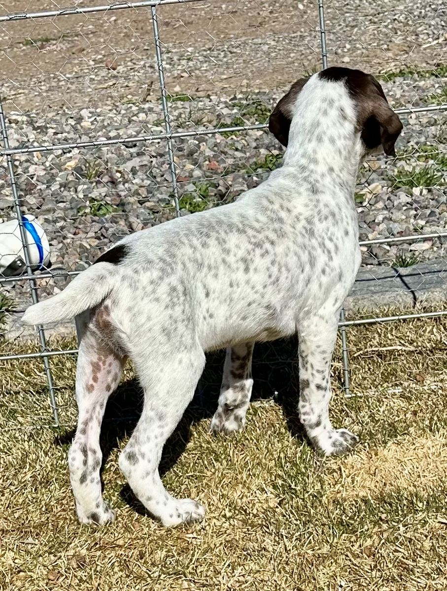 VenmoThis is an amazing litter of German Shorthaired Pointers that are AKC registered. They were born on the 30th of Dec 2025. They will be ready to go to their new homes on the 24th of Feb 2026 when they are 8 weeks old. The tails have been docked and the dew claws removed. We have been doing biosensor training (reportedly helps to stimulate better health and adaptability). They will have their veterinarian check ups and their first set of shots and de-wormer done at week 6 of age. Each puppy will come with an AKC registration sheet and a copy of the ‘Litter Certificate’ showing the puppies genealogy three generations back. We own both parents and they are amazing with our children and incredible athletes. If you aren’t familiar with the breed, GSPs are very athletic, energetic, loving and incredibly smart. Ours love to go on long mountain bike rides, camping and hikes, although they are first and foremost our family dogs. Mom is liver roan and darkly ticked and dad is black roan and darkly ticked. Both are amazing dogs! We are currently taking deposits, which will be first come first served for pick of the litter. We are asking $850 each, and the deposit will be $200 to reserve your puppy.