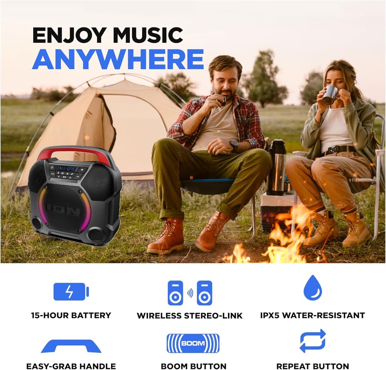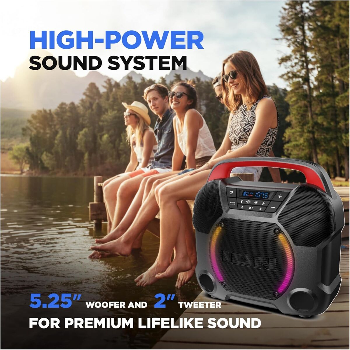 65W 3 Speaker Sound System Rechargeable 10 Hour Battery IPX5 Water-Resistant App-Enable Control For Audio & Lighting Effects USB Charge Port